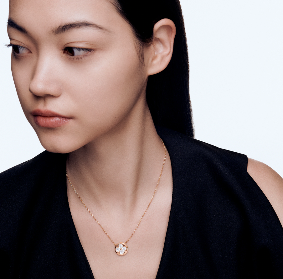 Color Blossom celebrates the Monogram flowers, created in 1896 by Georges-Louis Vuitton. Set into pink gold, the flower blooms into a carved white mother-of-pearl. Months of work were necessary to perfect the stone’s subtle curves and sparkle. The dazzling array of jewel creations is an invitation to create your own personal harmony.