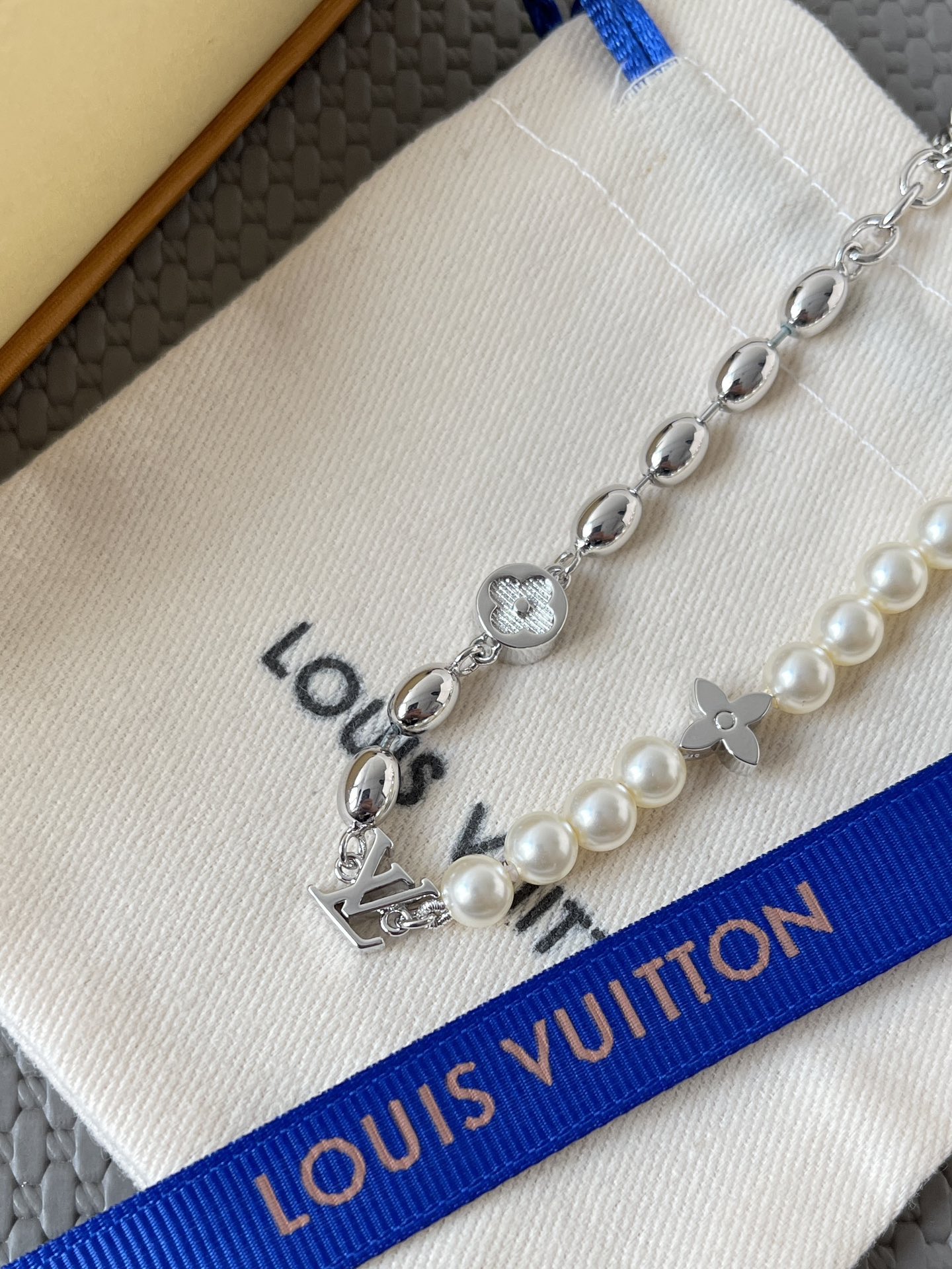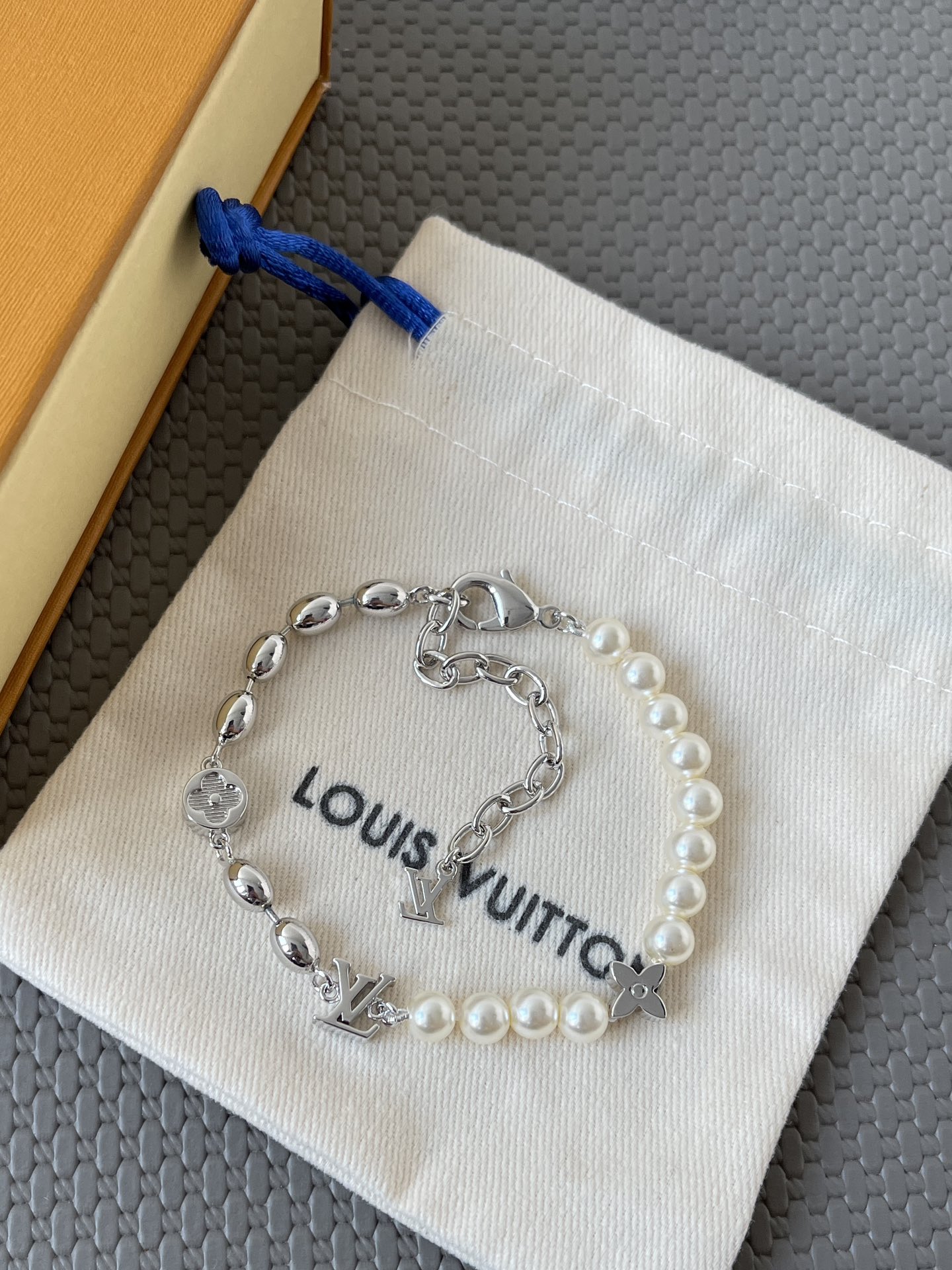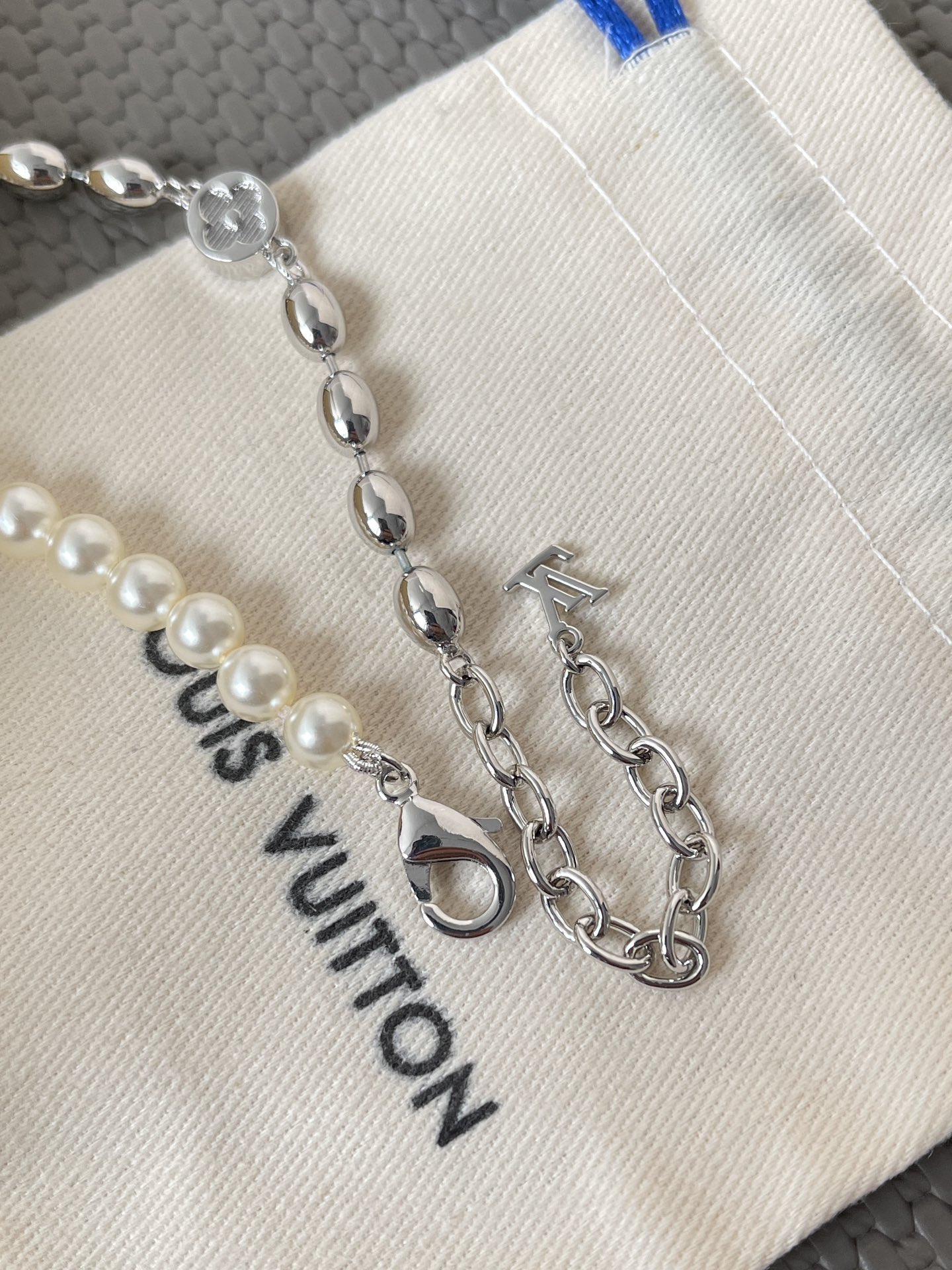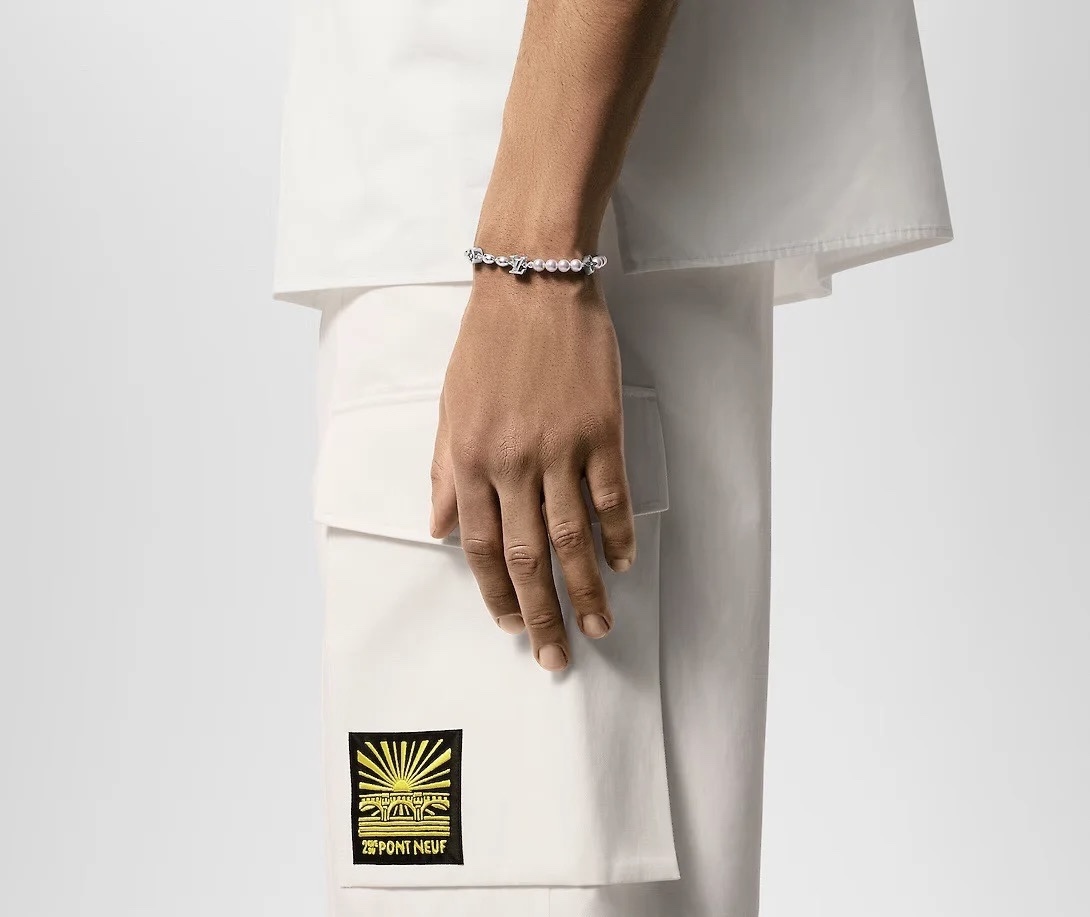 The Pearl Fusion bracelet creates an asymmetrical design with metal beading and glass beading, interspersing Monogram floral inscriptions and LV elements to slowly exude Dandy fashion. LV letters embellish adjustable chain to show the heroic interpretation of beading.