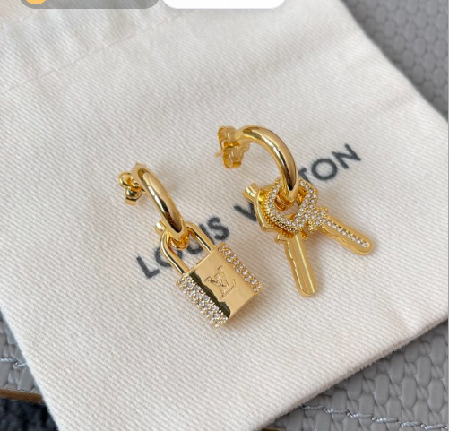 LV asymmetrical earrings Design materials bright imitation crystal and metal, elegant out of pure and gentle meaning. The key and lock on both sides are suspended under crystal studs by delicate chain links, which can add the finishing touch to the trend. BIK
