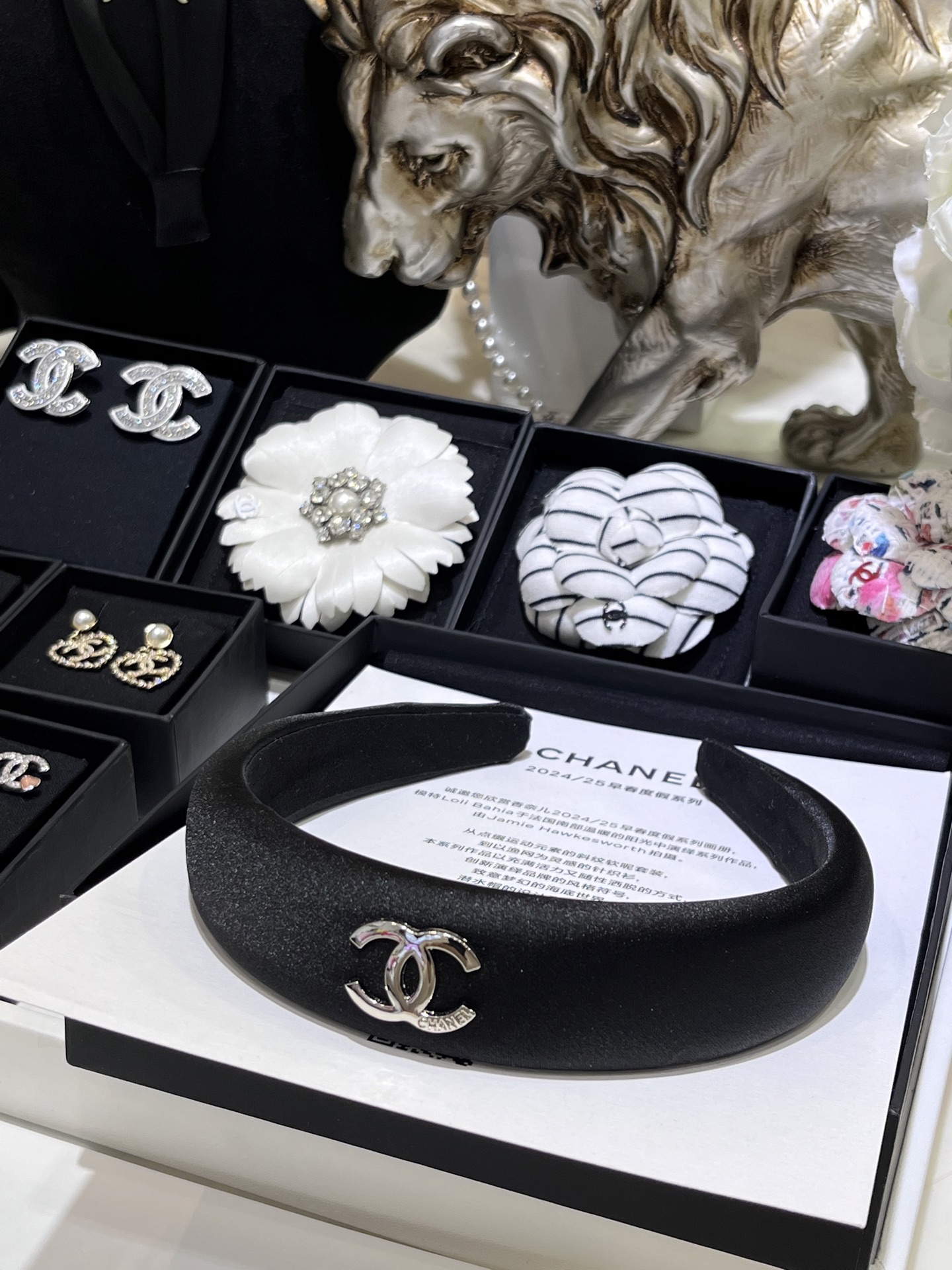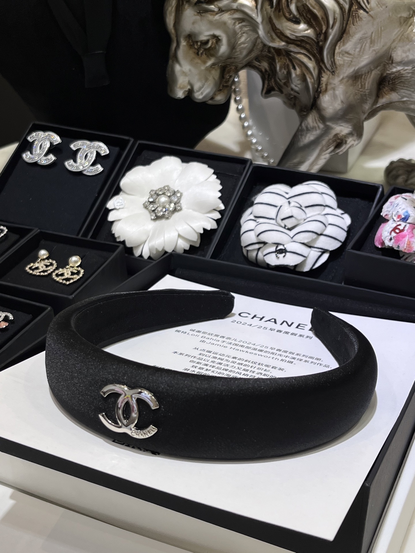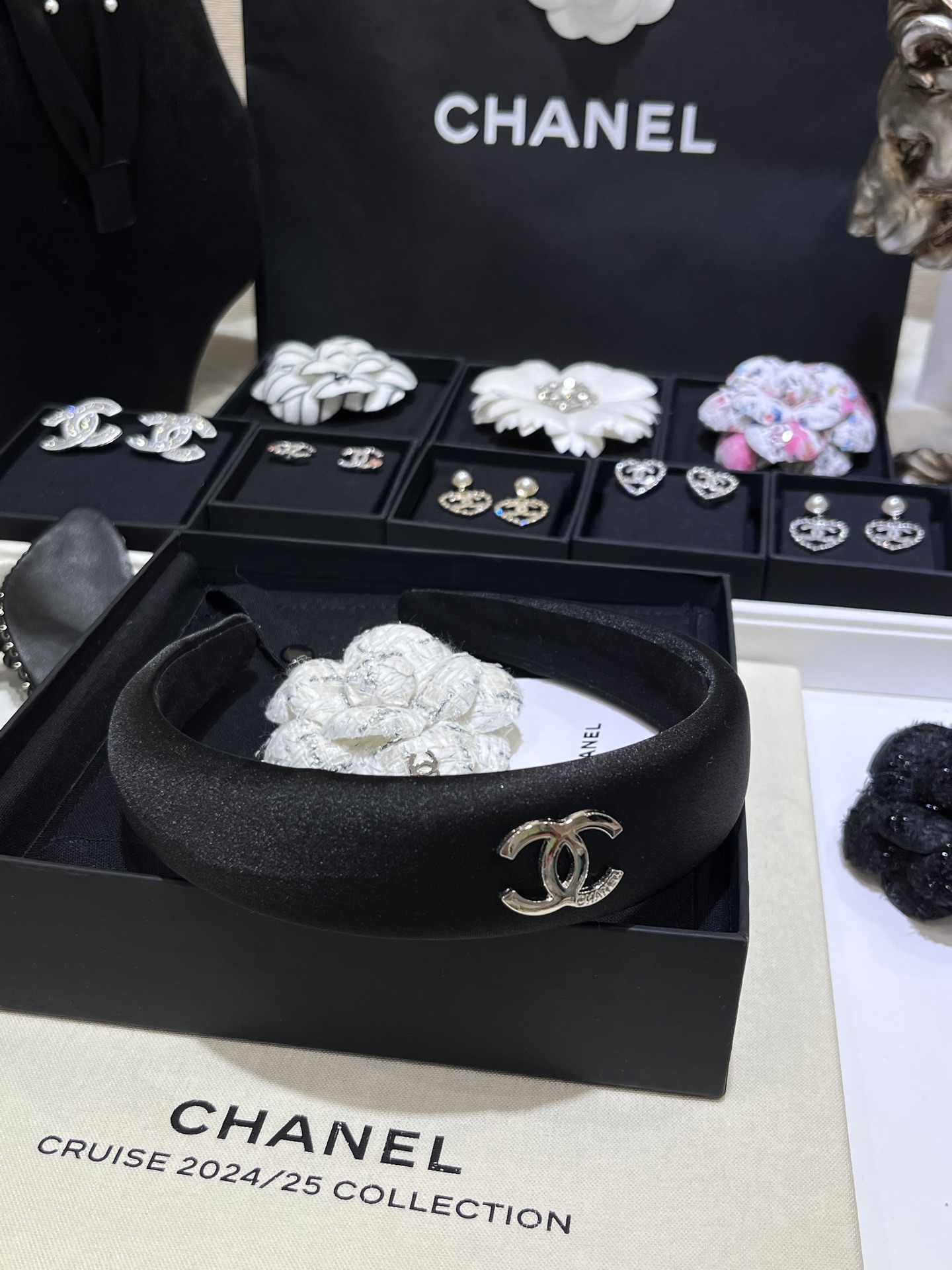 𝑪𝒉𝒂𝒏𝒆𝒍 25P new gold double C black velvet wide headband