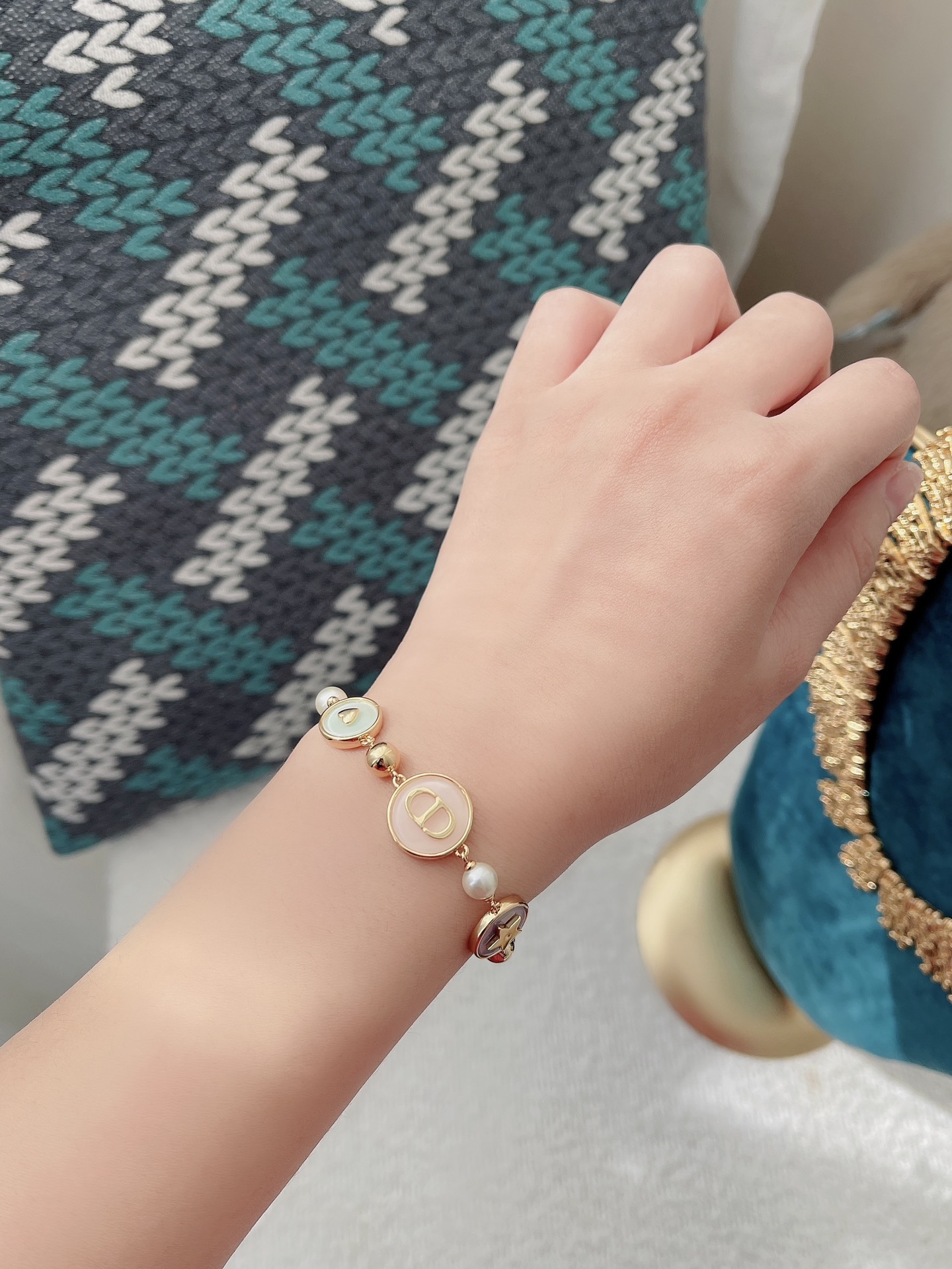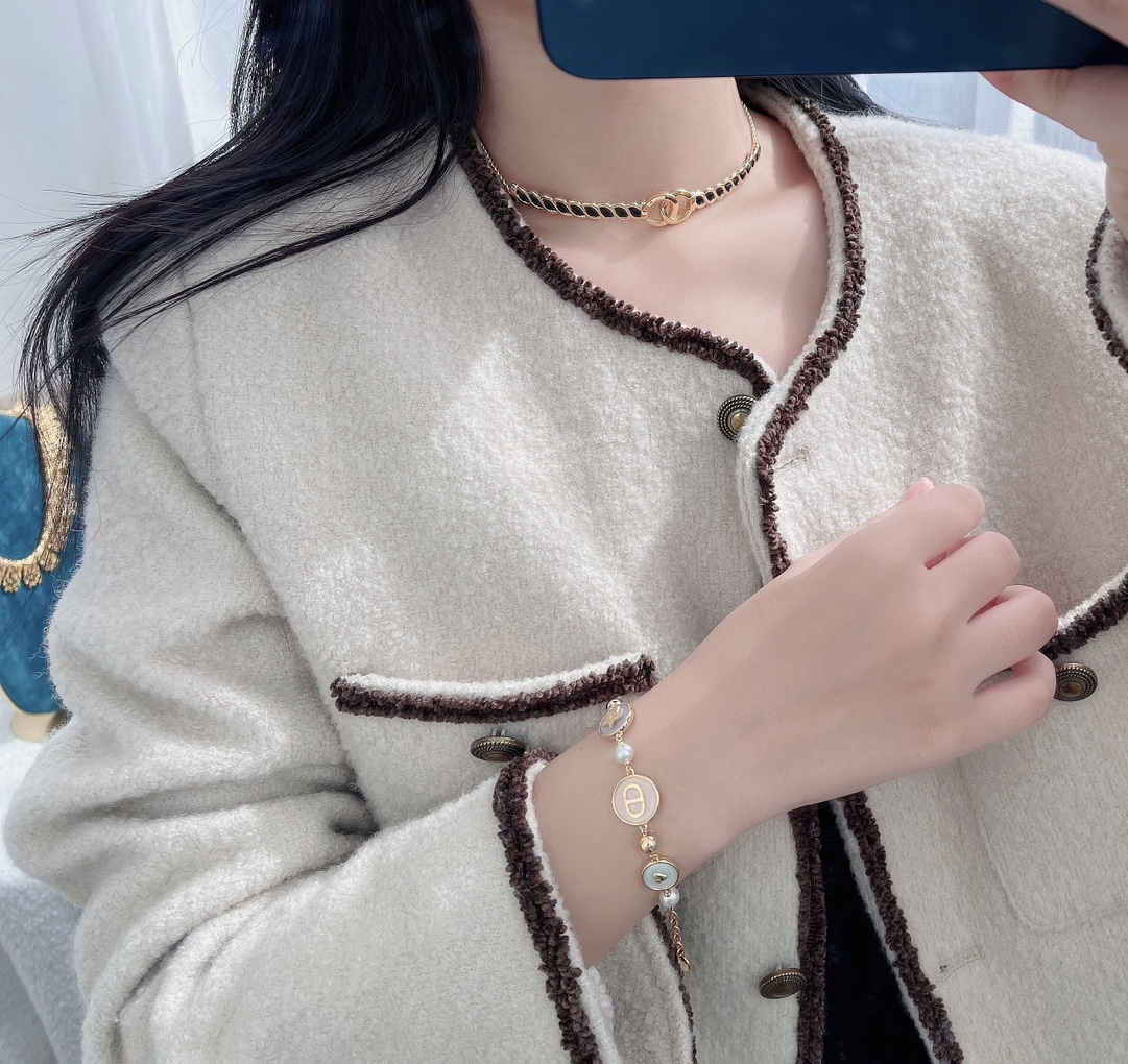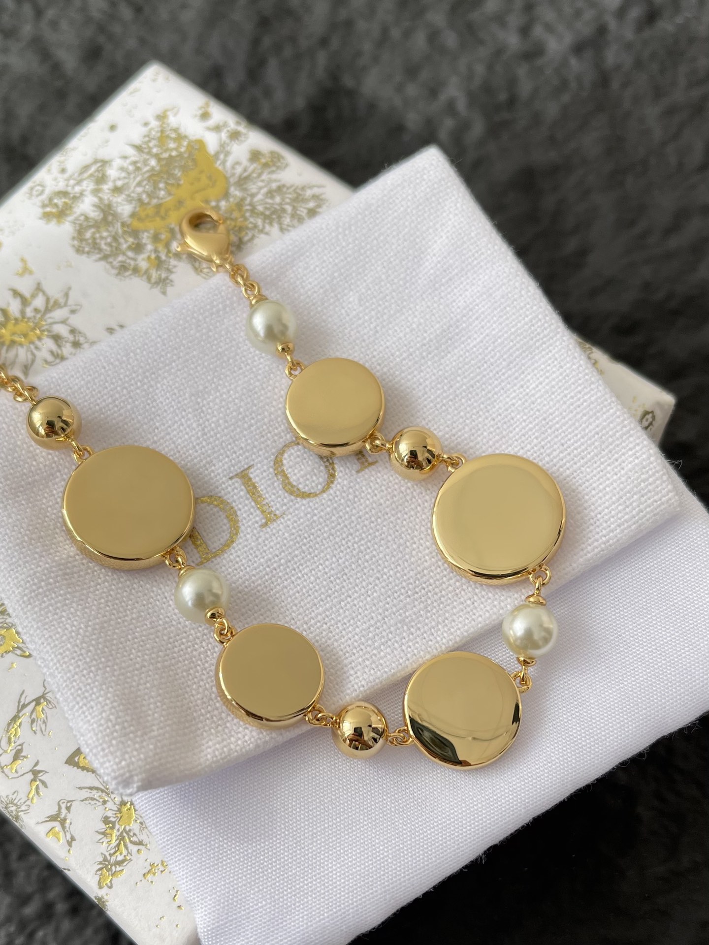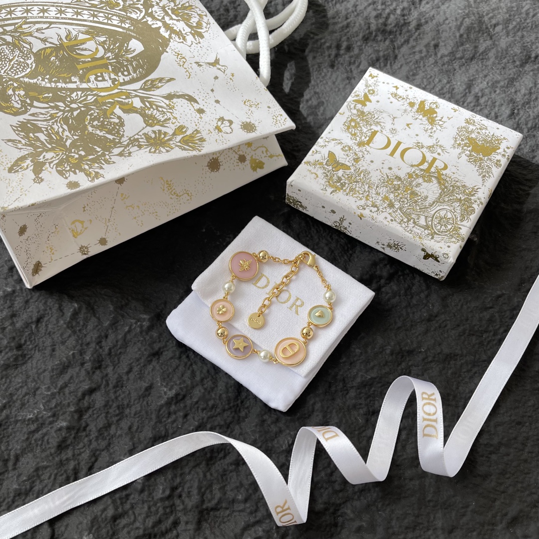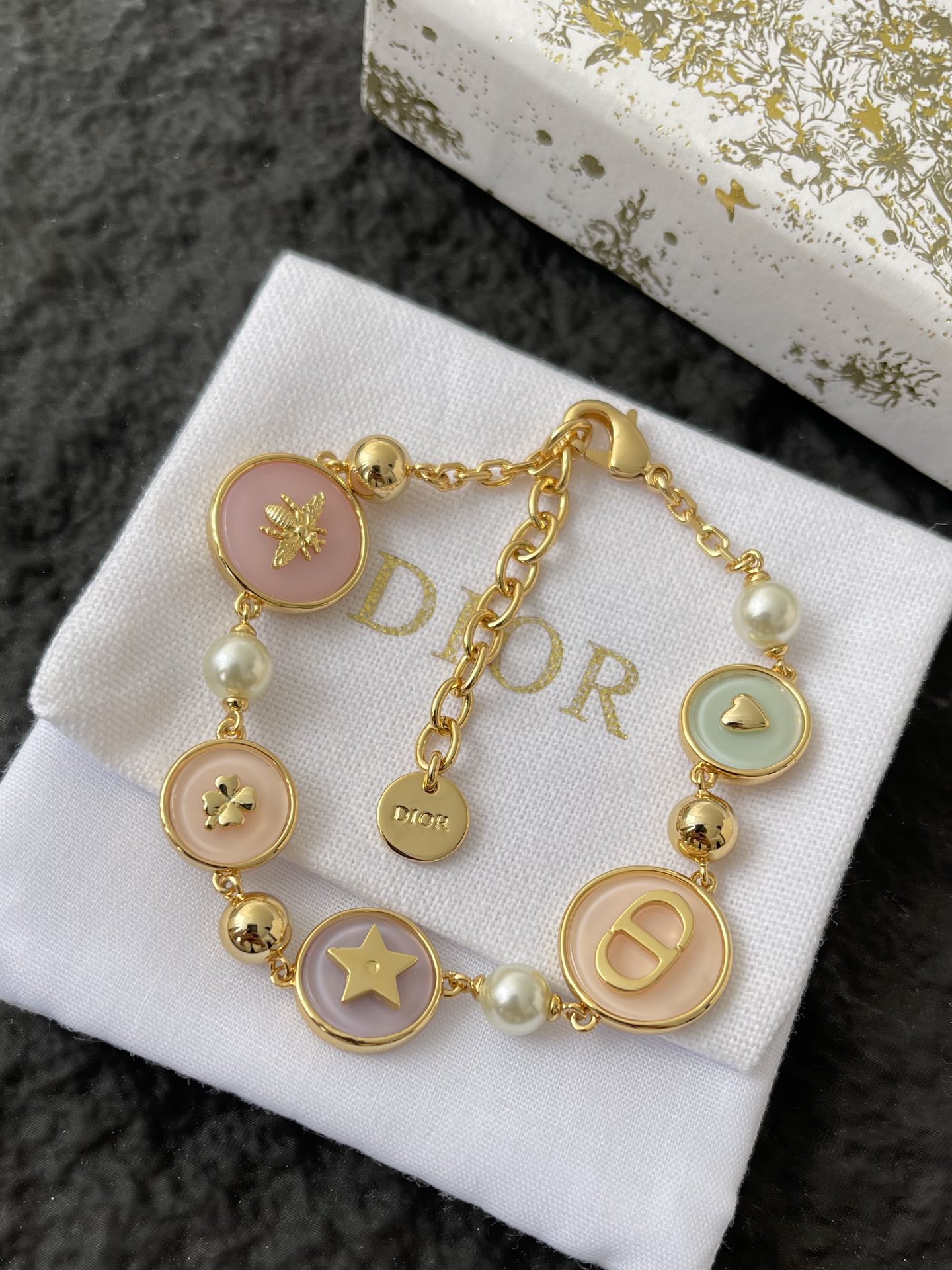 A stylish piece adorned with all of the Maison's favourite symbols. Crafted from gold-finish metal, it features white resin beads and a pastel-hued clear resin medallion. The medallion is embellished with a range of classic details including hearts, stars, four-leaf clovers, bees and the CD logo. Add a splash of colour to any look. CBK