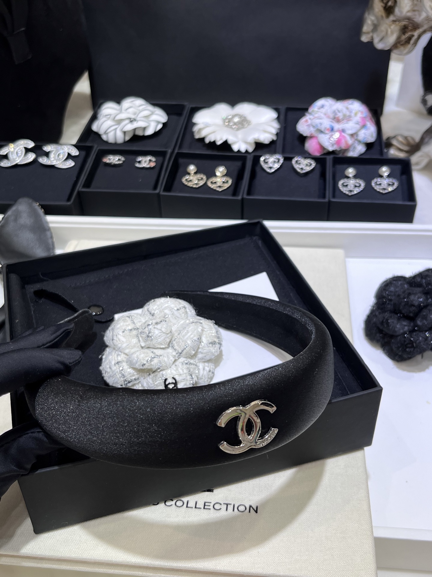 New Gold Double C Black Velvet Wide Headband