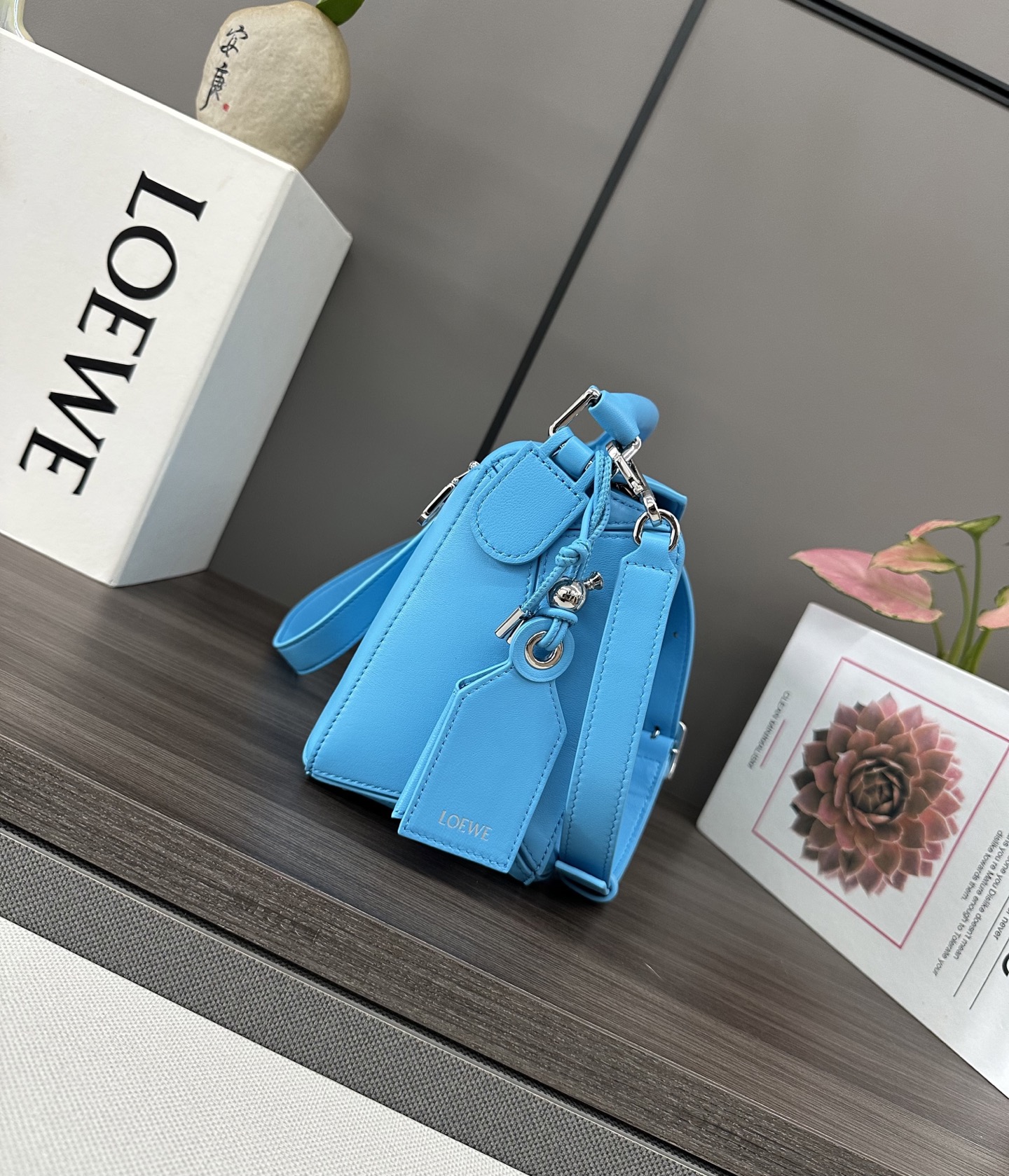 This bag features unique geometric lines that outline a rectangular shape. The soft and lightweight Nappa leather adds a relaxed, laid-back vibe to the bag. It can be worn on the shoulder, crossbody, or carried by hand.