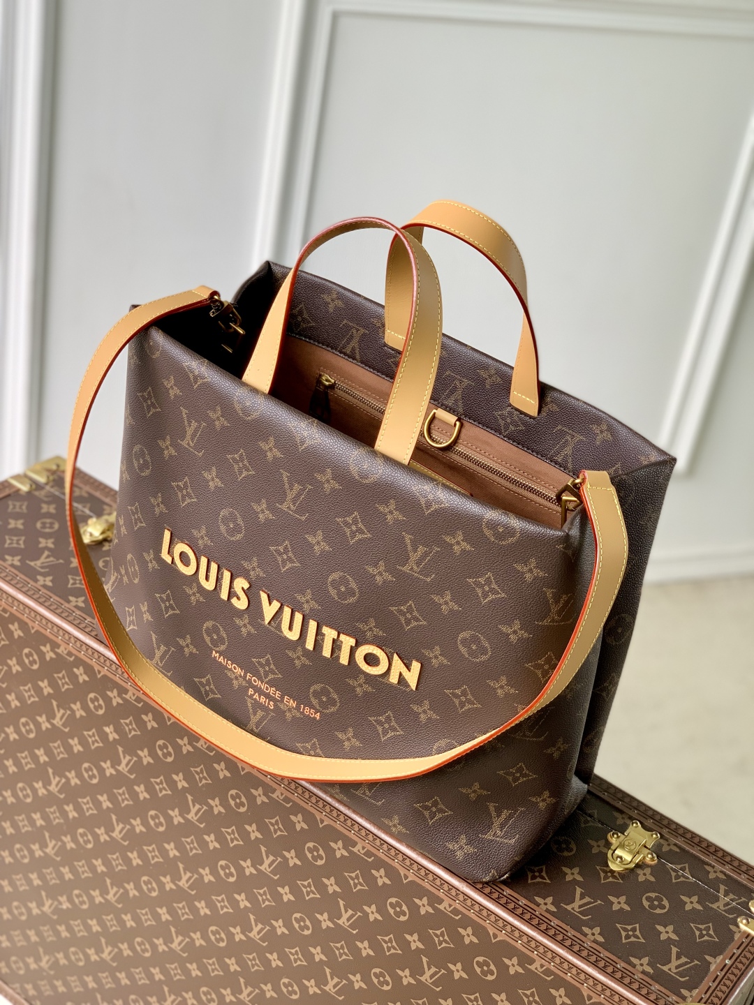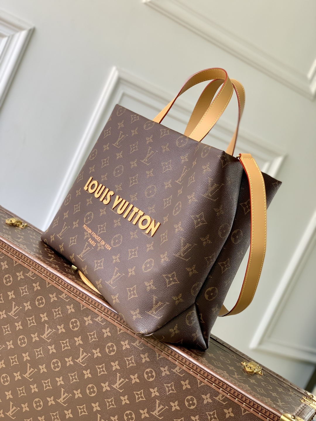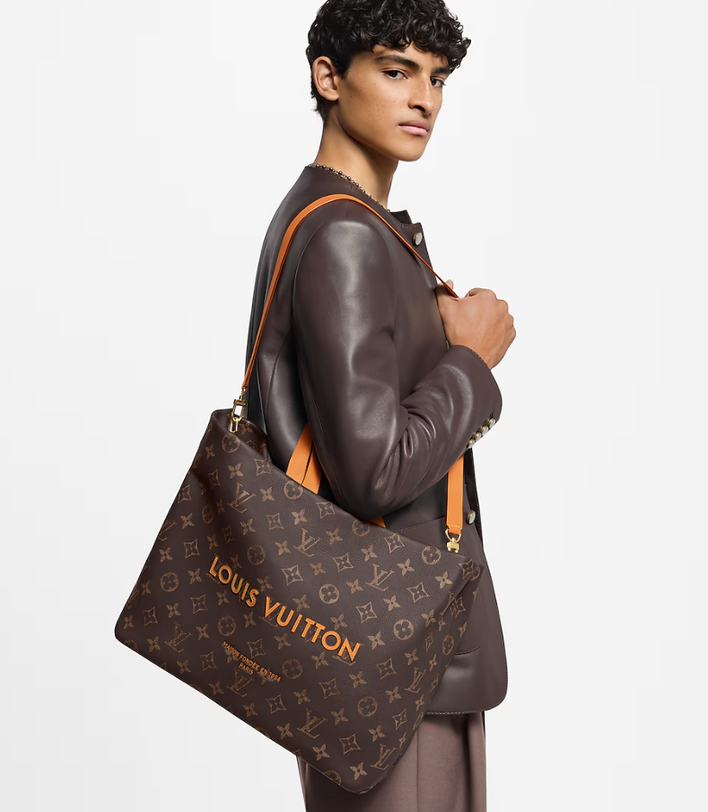 The elegant Shopper Tote MM is fashioned from supple calfskin leather that appears to be Monogram canvas. Pharrell Williams playful design creates the illusion of aged Monogram canvas through a special treatment of the leather. Versatile, it has two top handles and a removable shoulder strap.