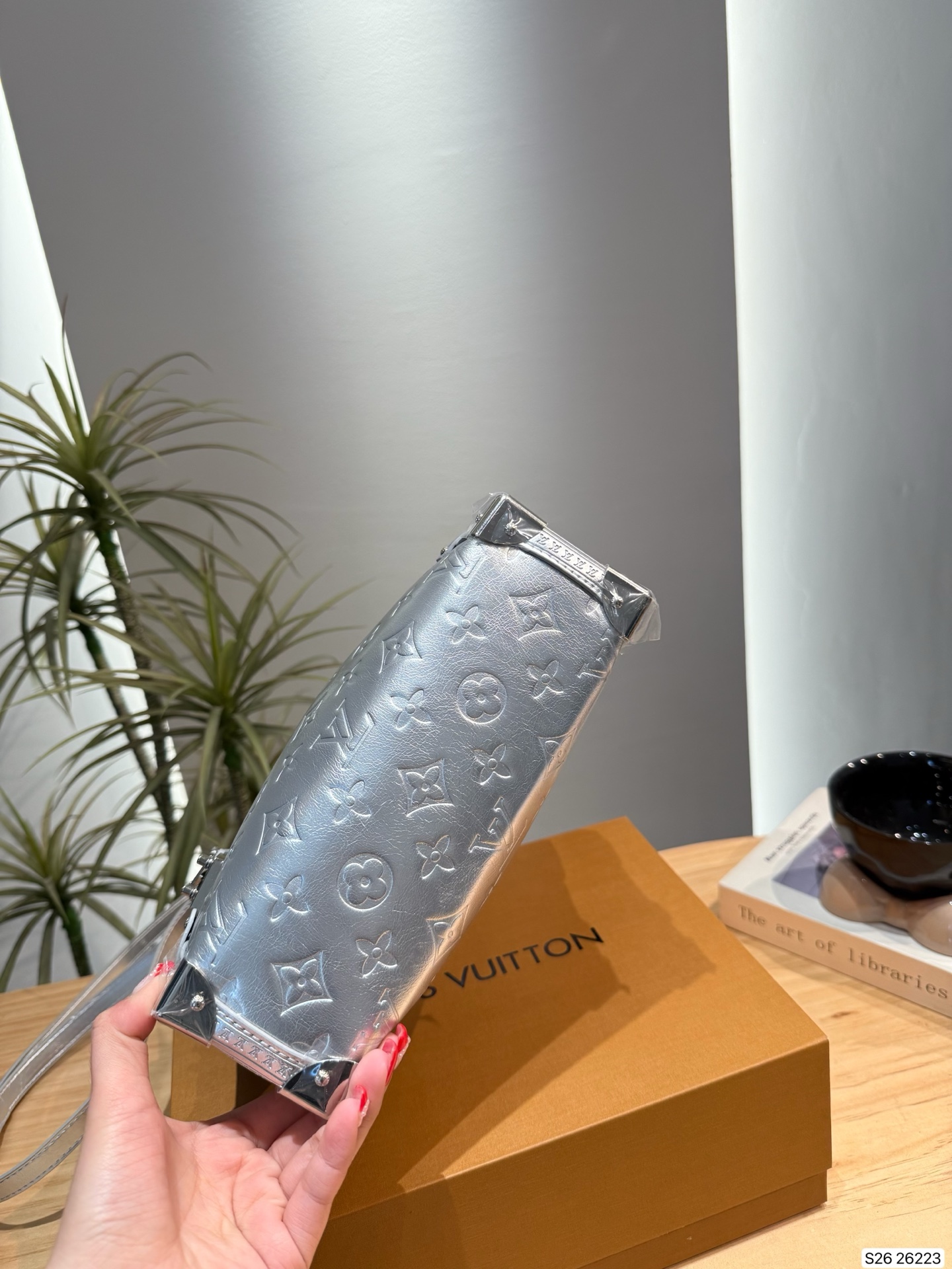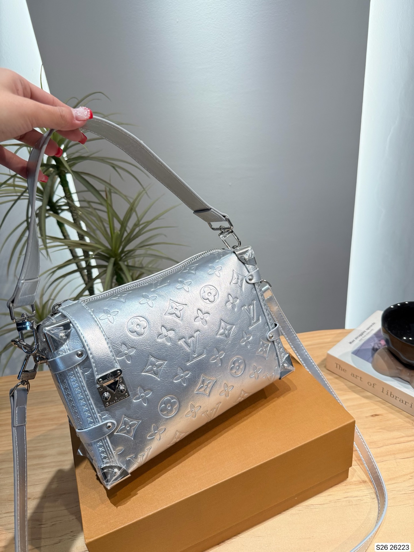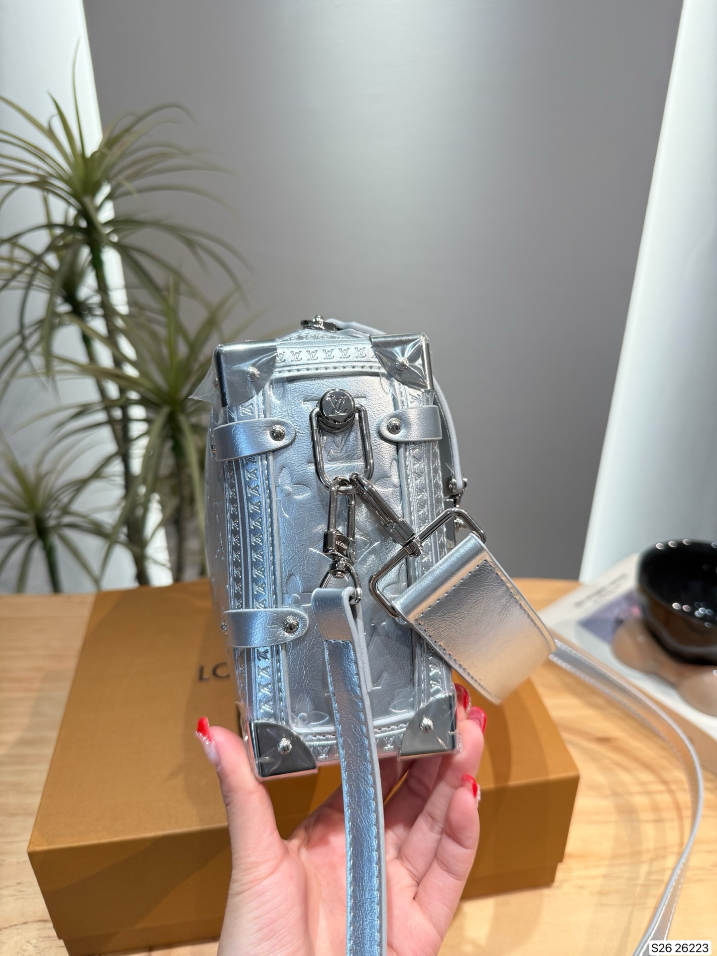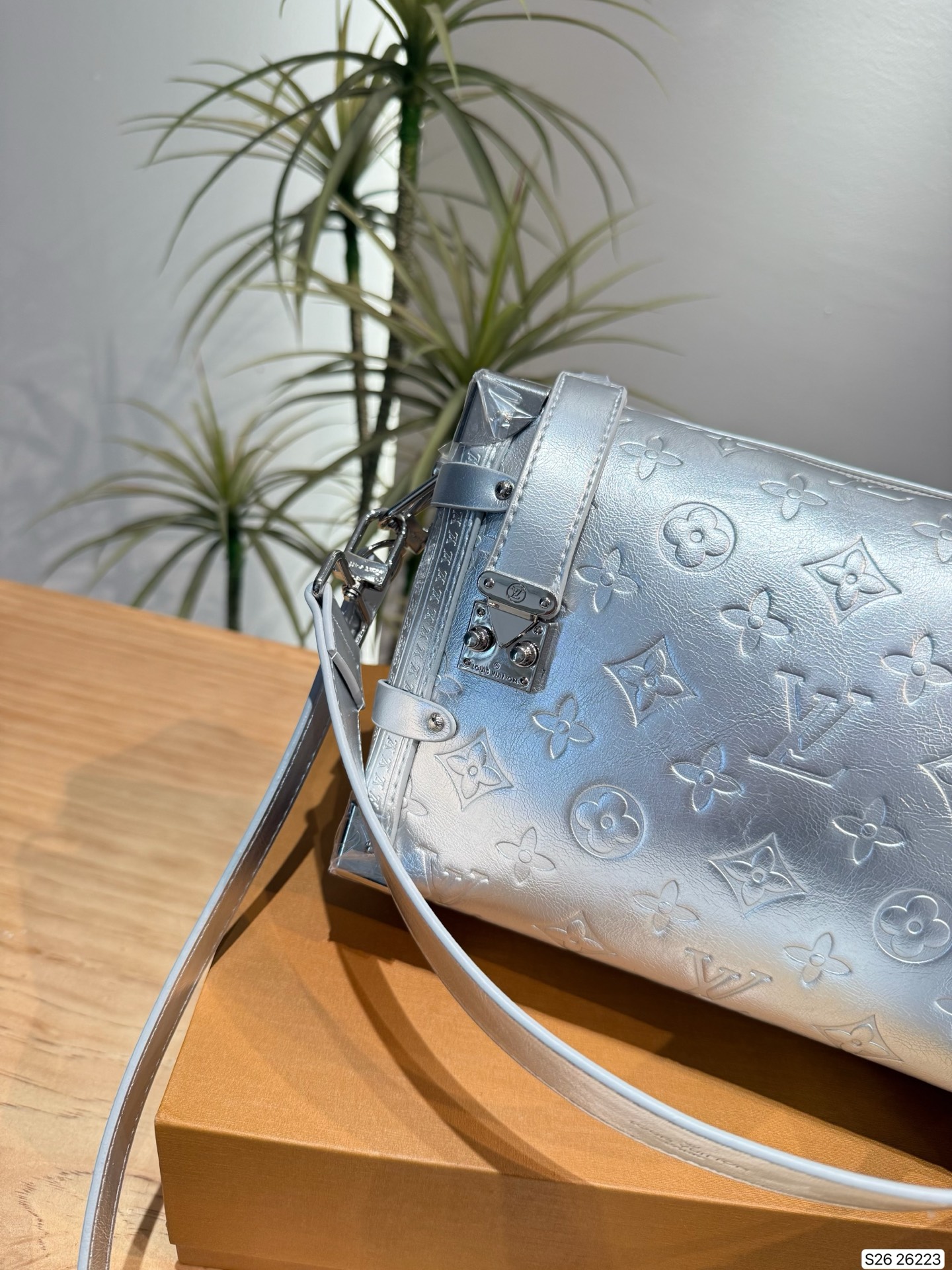 An elegant après-ski option, this Monogram Miroir Side Trunk MM makes a fashion statement with its light-catching finish. It is crafted from leather in a bold Silver colorway that adds a futuristic feel, and is adorned with a signature S-lock in a tonal finish. Echoing the original design, this seasonal edition includes metallic corners, paying tribute to the House’s luggage-making heritage. A day-to-evening bag that transitions effortlessly from winter outings to sophisticated soirées.