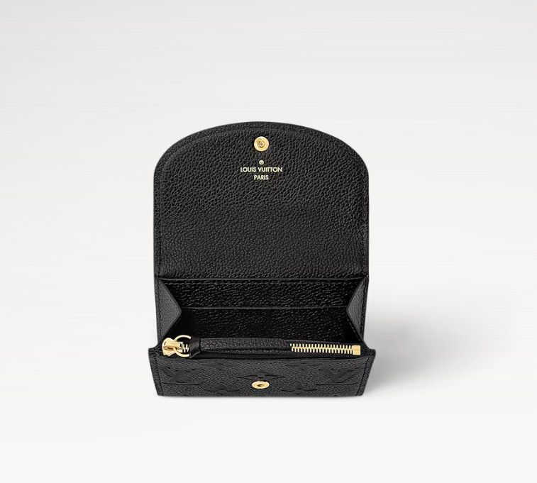 The Rosalie coin purse is crafted from supple, grained Monogram Empreinte leather, which is embossed with the iconic Monogram pattern. This tiny, feminine purse features a rounded flap secured by a gold-tone, Louis Vuitton-engraved press-stud. As well as a zipped pocket for coins, it offers a flat pocket and two card slots.