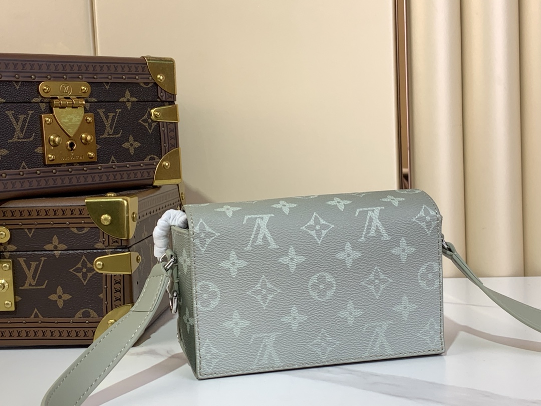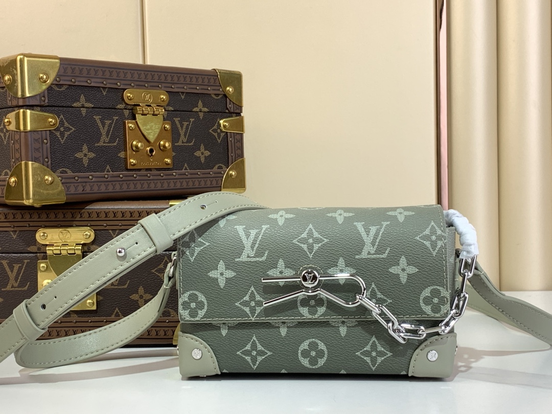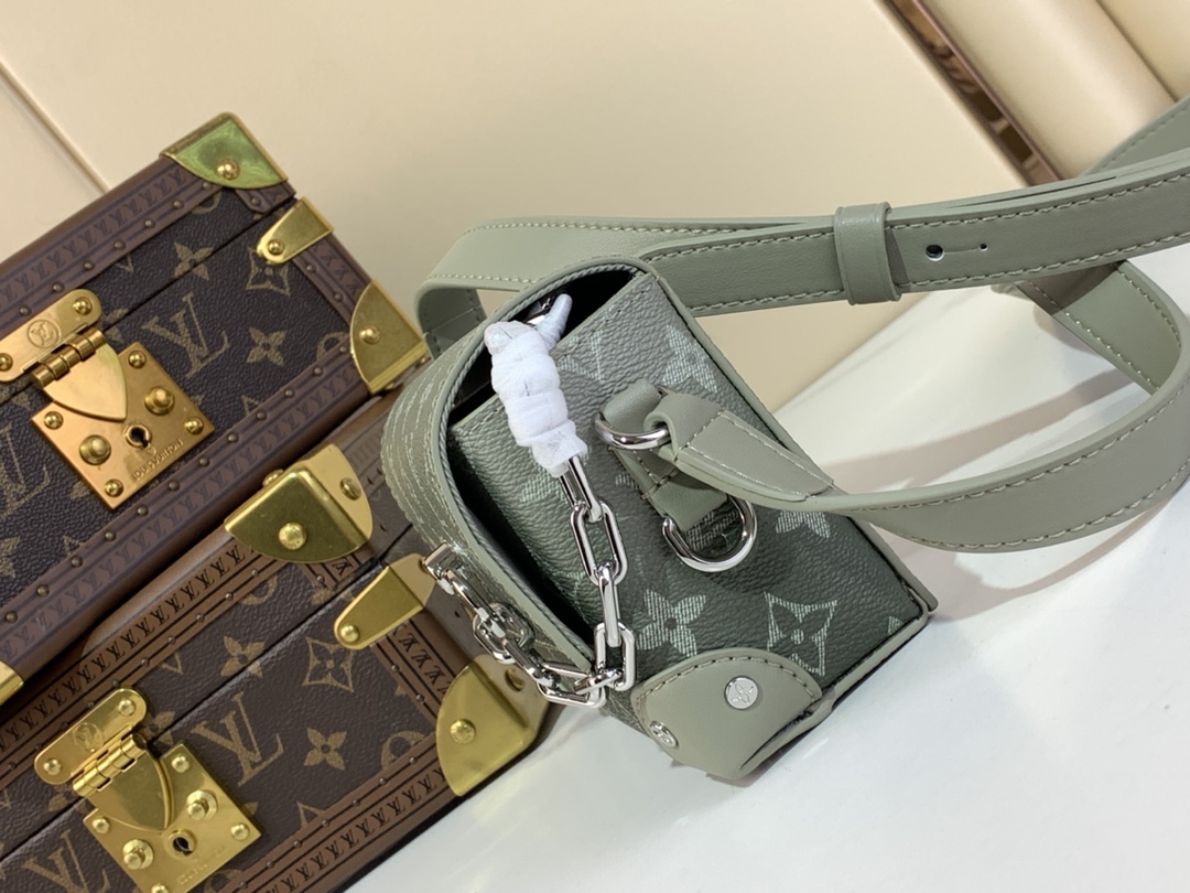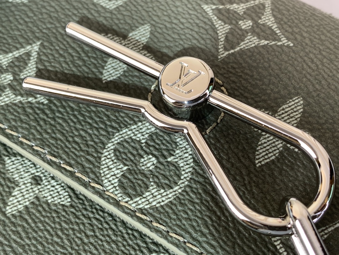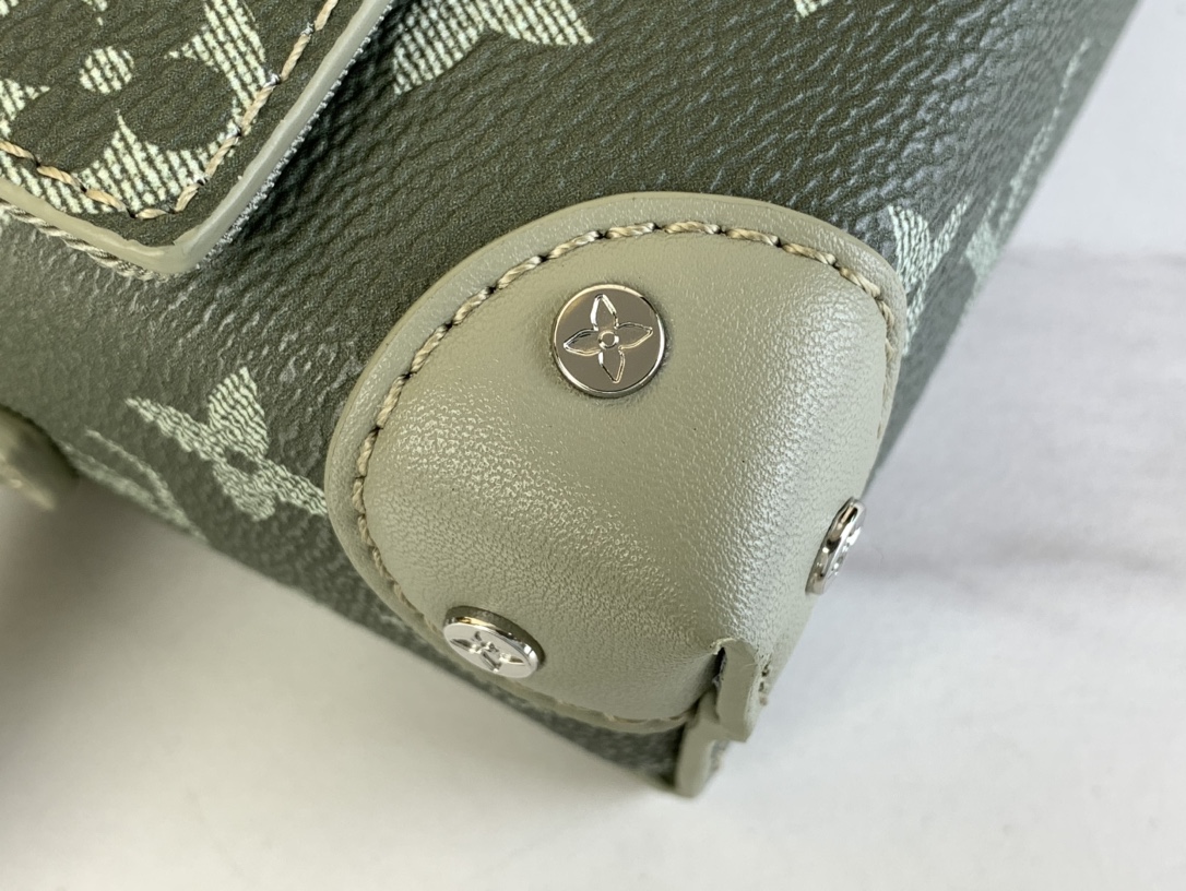 This Steamer wearable wallet is made of Monogram Gradient coated canvas, showing a detailed gradient effect and a sense of sophistication. The palladium buckle chain perfectly echoes the brand's original Steamer bag, while the reinforced corner guards with rivets pay homage to the brand's traditional hard luggage. The length of the shoulder strap is adjustable, making it suitable for shoulder and cross-body wear.