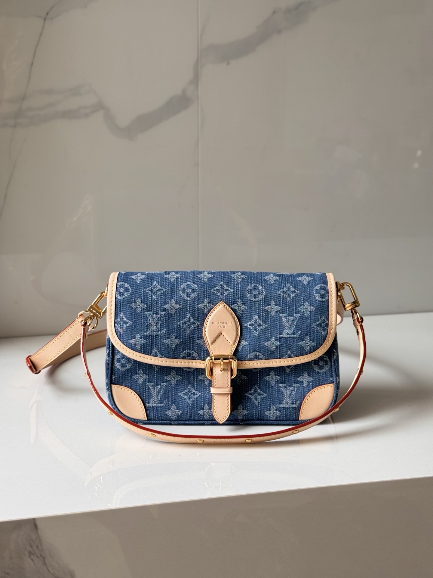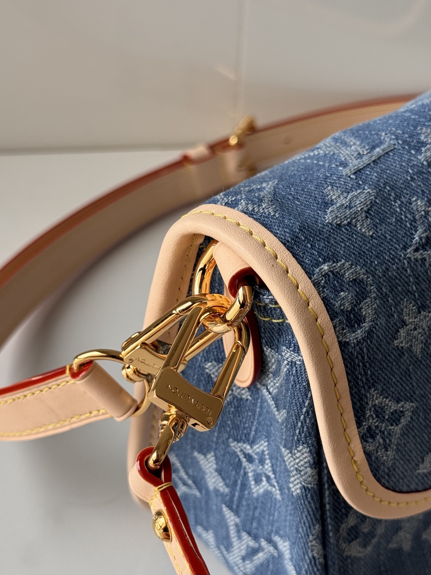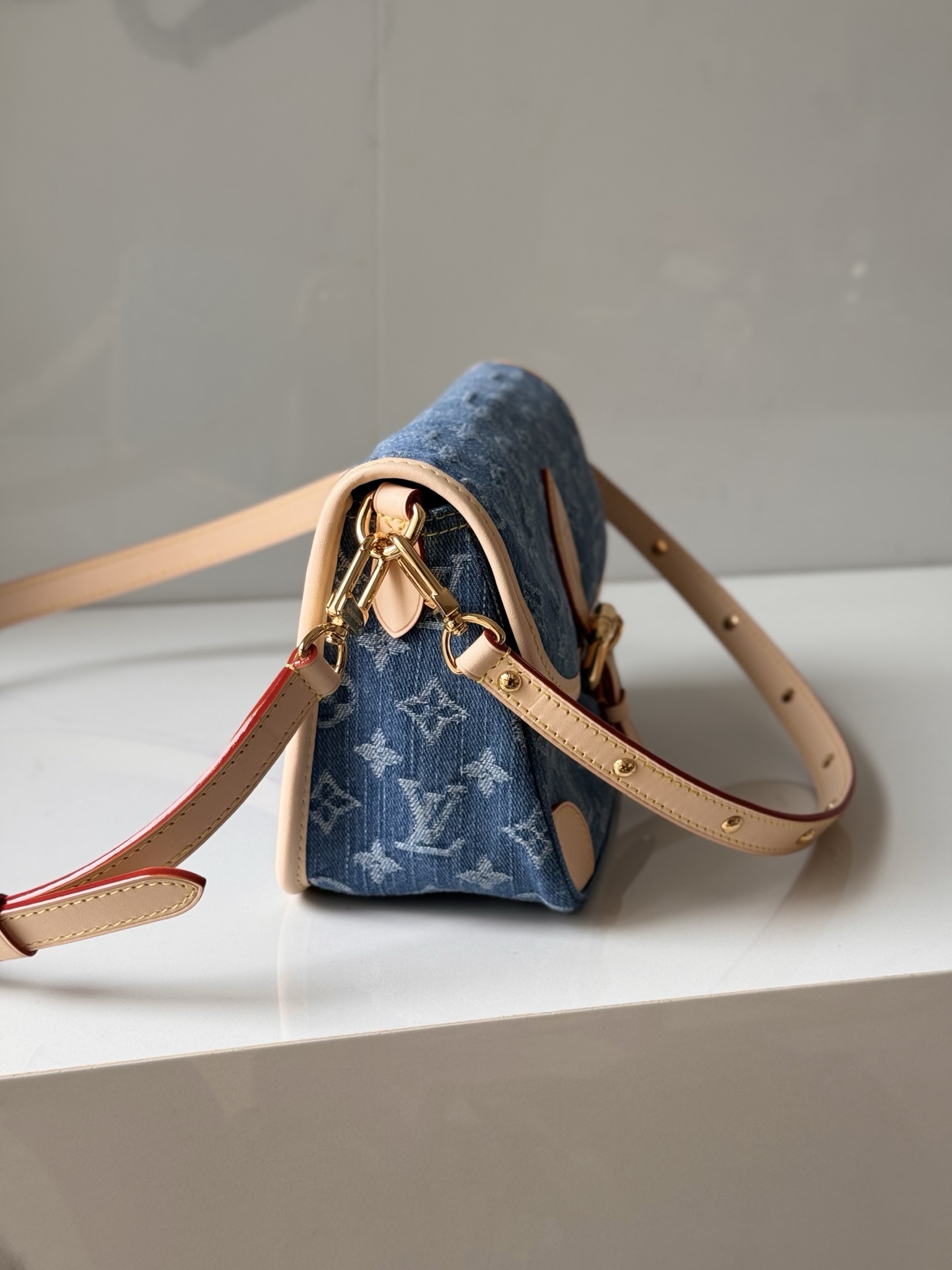 The House’s iconic Monogram denim returns for the season, offering a contemporary take on the Diane handbag. This versatile design is elevated with contrasting natural cowhide leather trims and elegant gold-toned hardware. Inside, it reveals a zipped pocket to keep valuables secure and can be worn multiple ways, thanks to the removable leather strap.