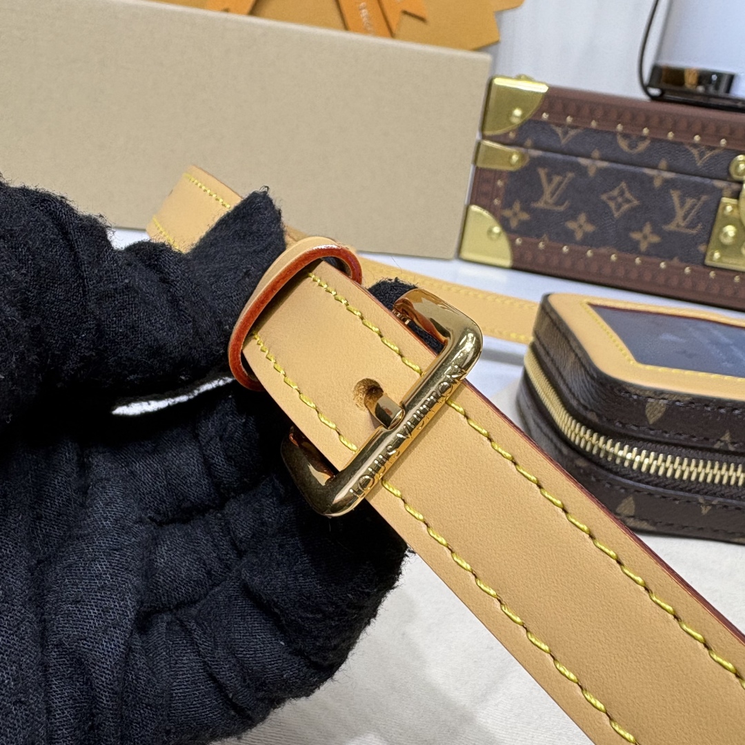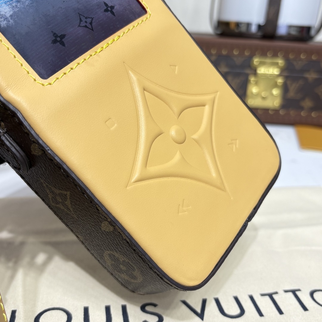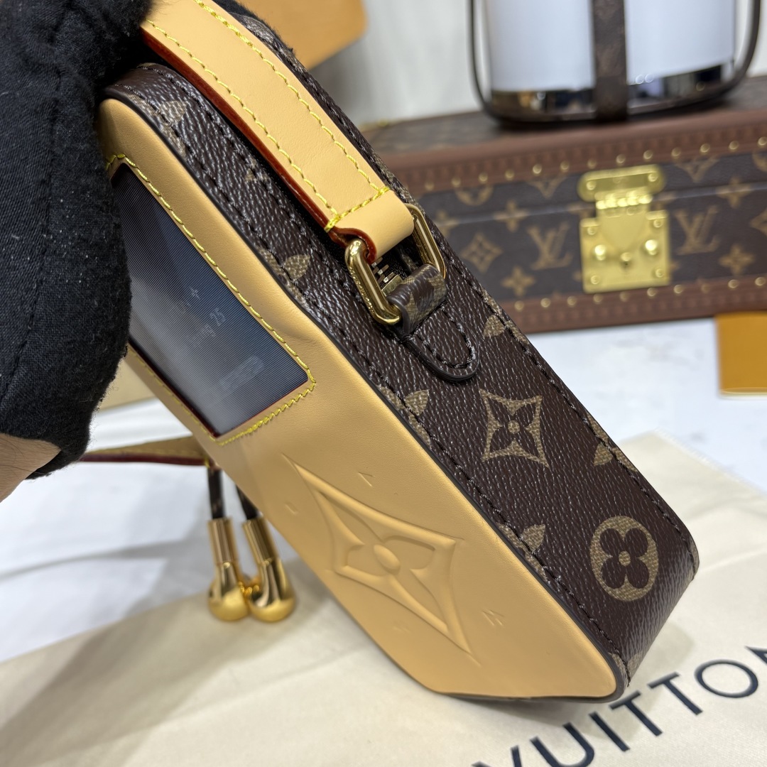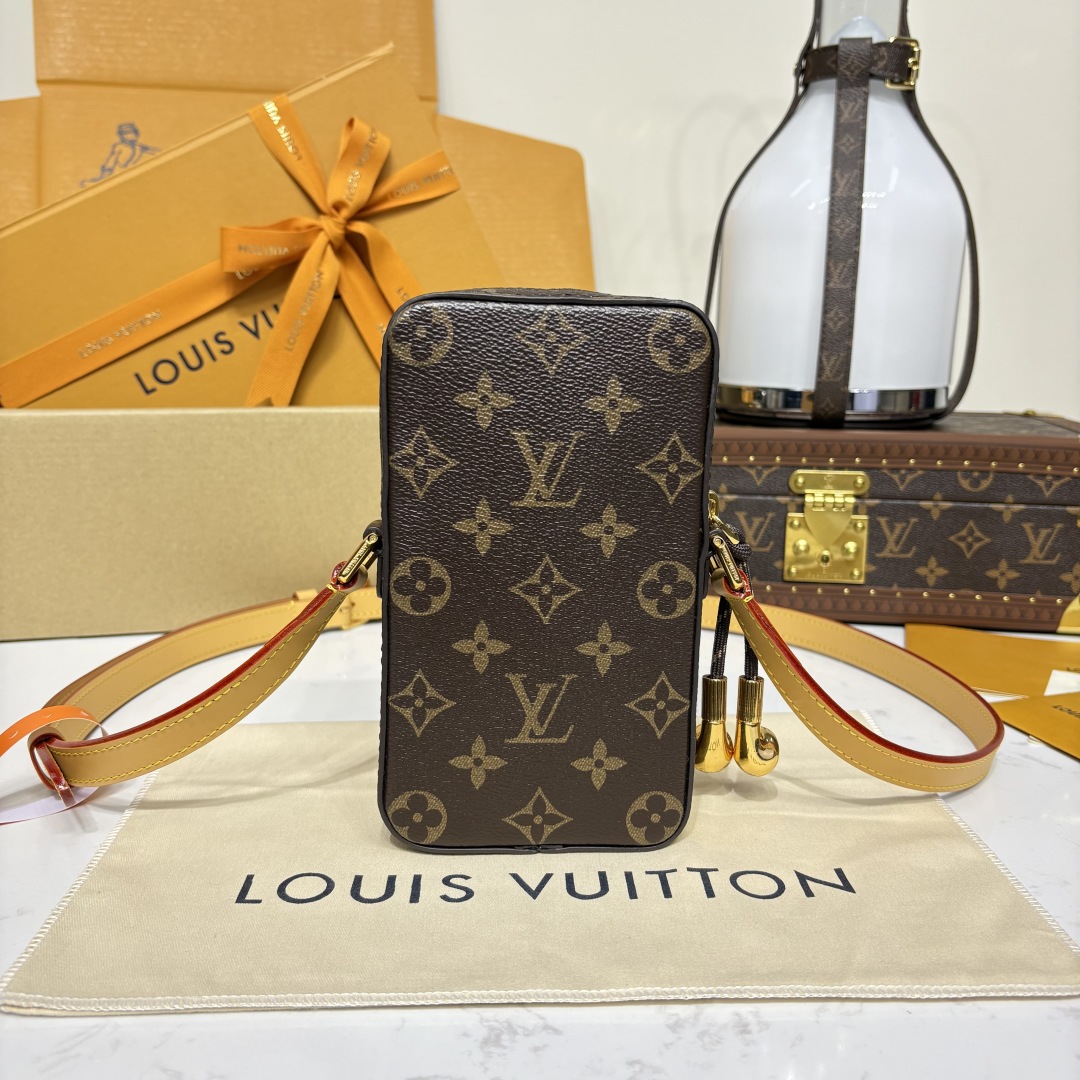 The Music Player Wearable Wallet is fashioned from cowhide leather and Monogram canvas and lined in black textile. Evocative of a vintage digital music player, it features an LV Blossom as the interface and a faux screen proposing a LV dashboard. Fitted with a zip opening, it can hold a phone, card holder, and keys.