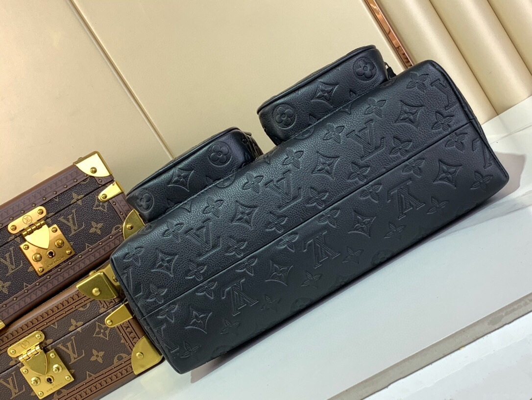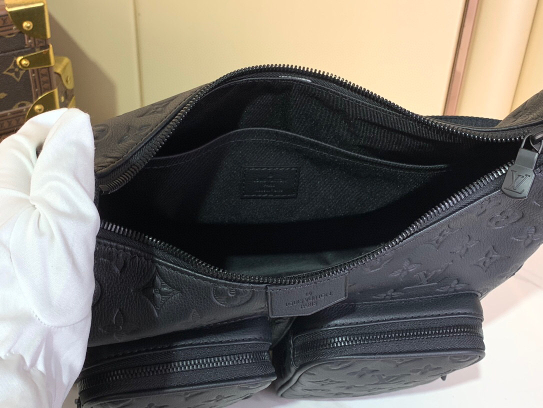 The Hobo Cargo bag is made from Monogram Shadow calf leather, making the bag remarkably supple. The embossed Monogram pattern brings understated elegance while the bag’s multiple pockets make it practical. The matte leather finish is perfectly aligned with the line’s masculine sporty attitude and makes the bag easier to wear on a daily basis.