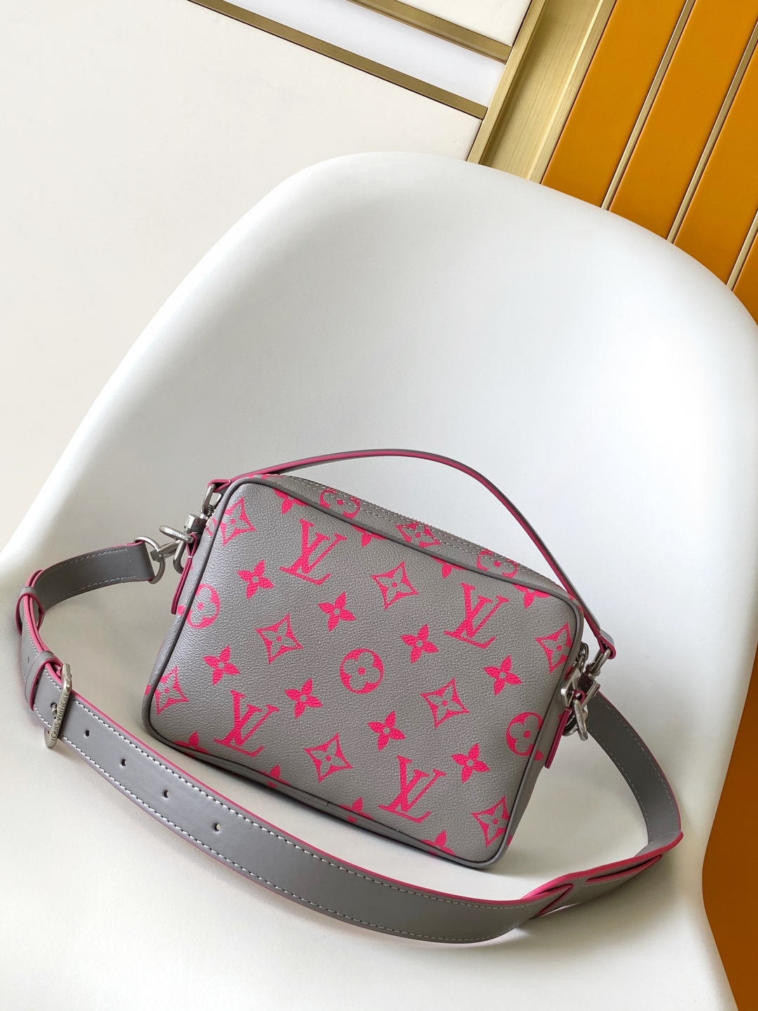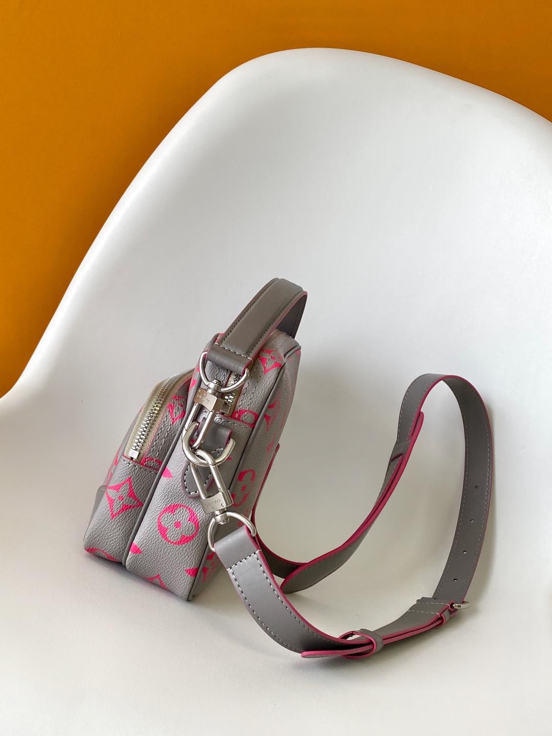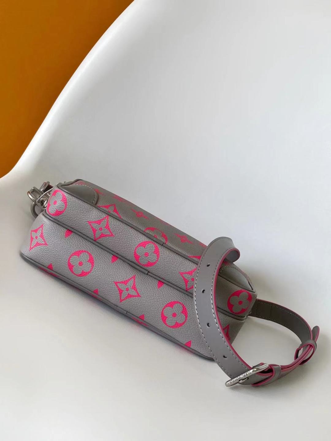 This Nil Messenger Bag is crafted from Damoflage Black coated canvas, a bold reinterpretation by Pharrell Williams that fuses the designer’s fresh perspective with Louis Vuitton’s creative heritage. The result is a **camouflage-inspired, pixelated Damier pattern**. A front zip pocket and spacious main compartment** complete the functional design.