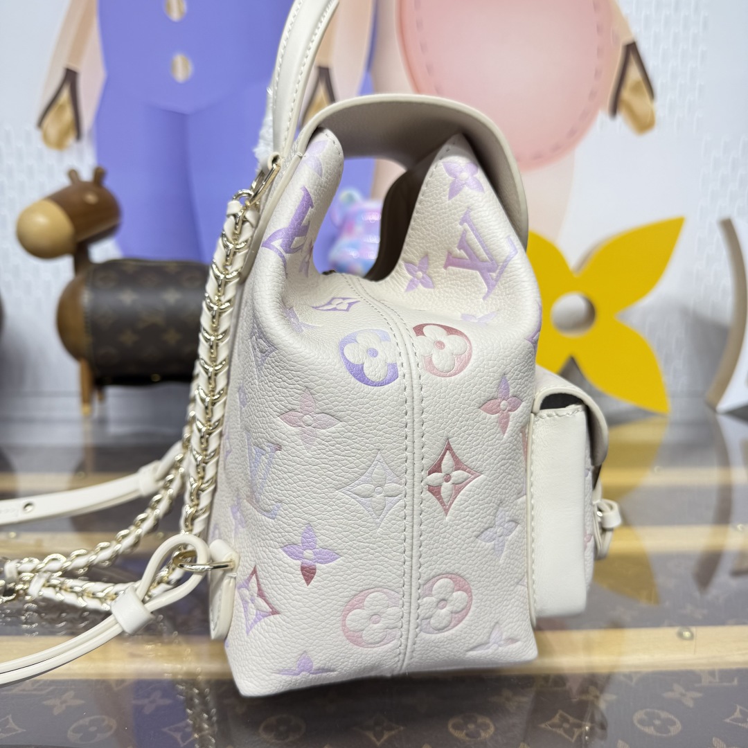 The Backup backpack is elevated for the season as part of the Dream animation, showcasing the House’s Monogram in a unique watercolor gradient. It is made from embossed grained leather in a versatile palette and is adorned with light gold-toned hardware including an elegant braided chain. The front flap pockets are fitted with magnetic closures to keep smaller items secure.