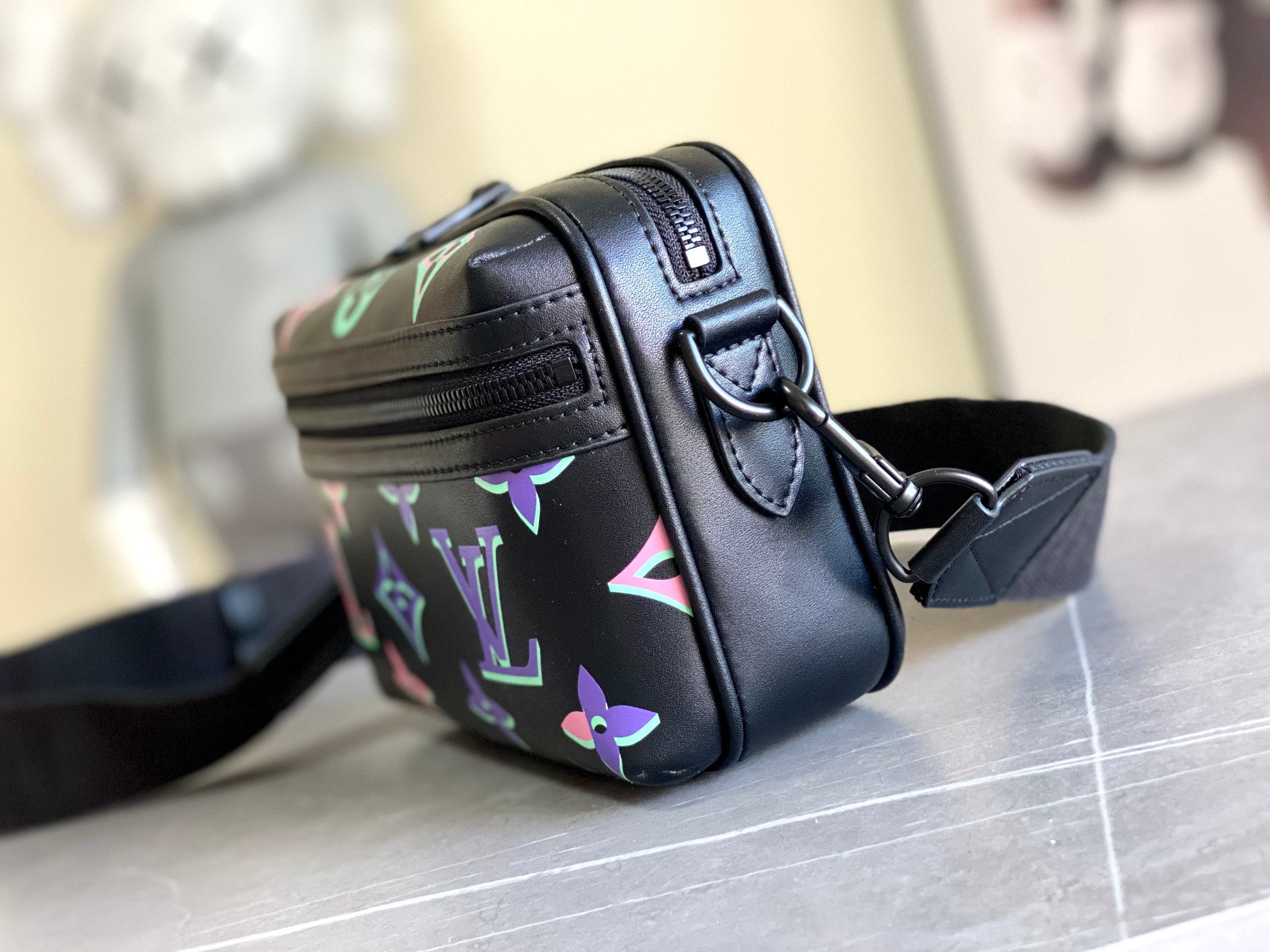 The Comet Small Messenger Bag (M22495) is crafted from cowhide leather, featuring a neon iridescent finish that reimagines the Monogram pattern as if seen through multiple exposures, evoking the effect of a spotlight shining directly onto it. The zip closure ensures your personal belongings stay secure on the go.