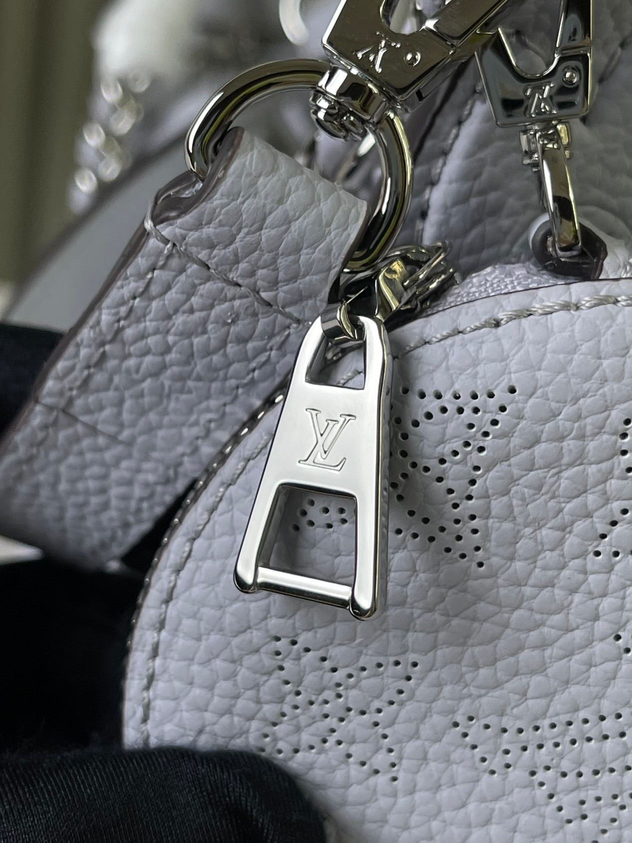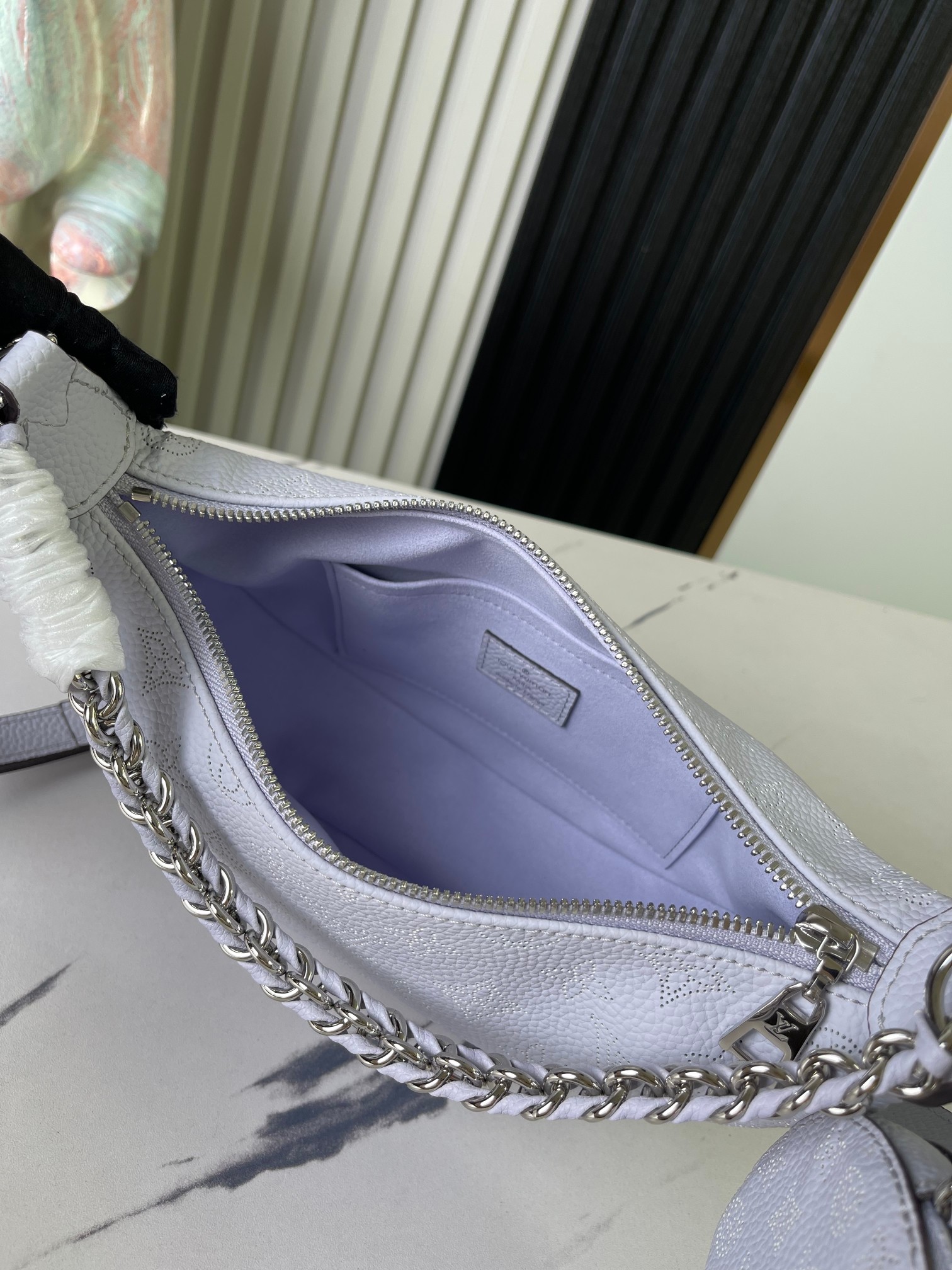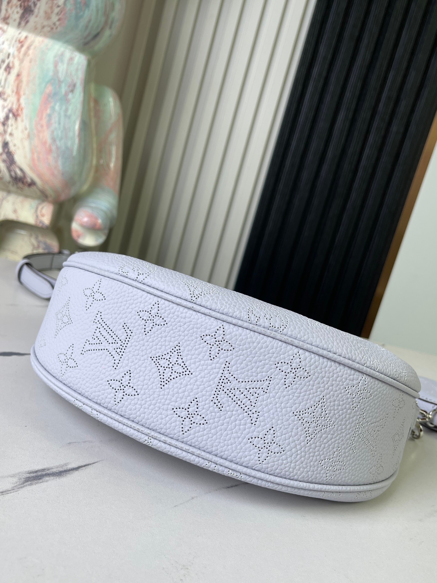 The Baia Small Handbag is made of soft and drapey perforated cowhide leather and joins the Mahina series with a comfortable and close-fitting half-moon silhouette. The leather and metal braided handles are combined with an adjustable long shoulder strap to achieve shoulder and crossbody options, and the coin purse enriches the details.