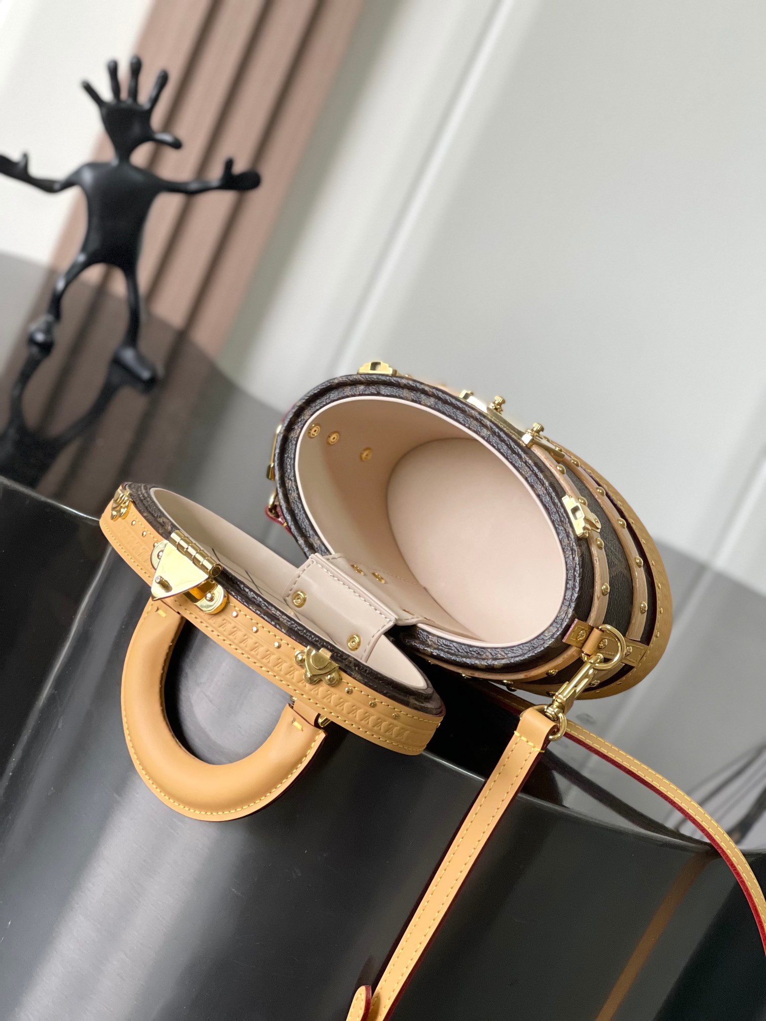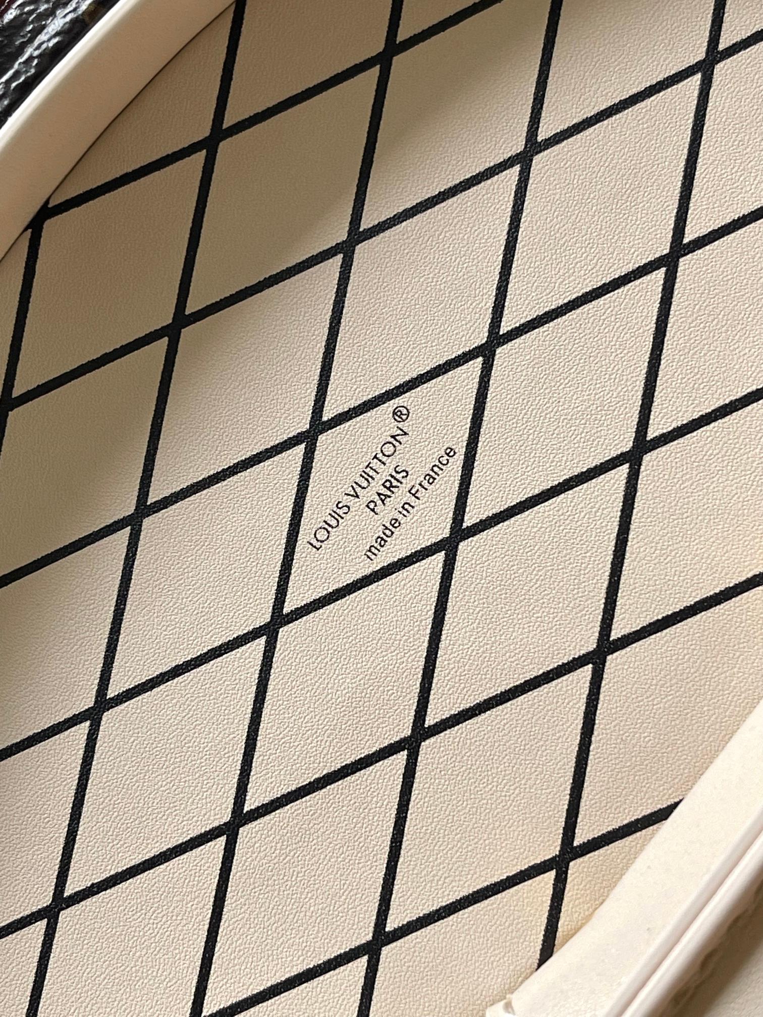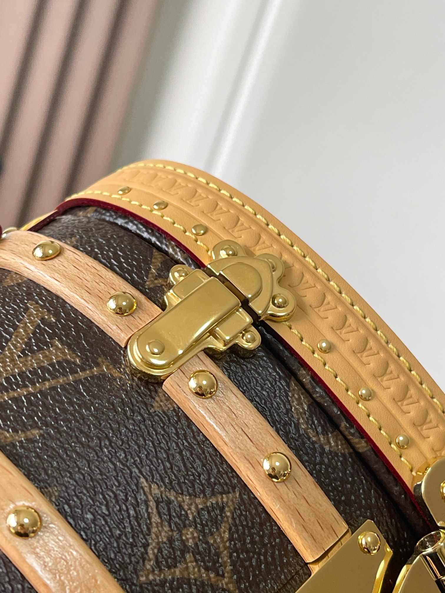 This Ellis handbag is made of Monogram canvas, trimmed with natural leather and beech wood, and reinforced with wooden slats, echoing the design of the brand's traditional hard trunk. The handbag is equipped with a leather top handle and a detachable leather shoulder strap with adjustable length, so it can be carried by hand, shoulder or cross-body.