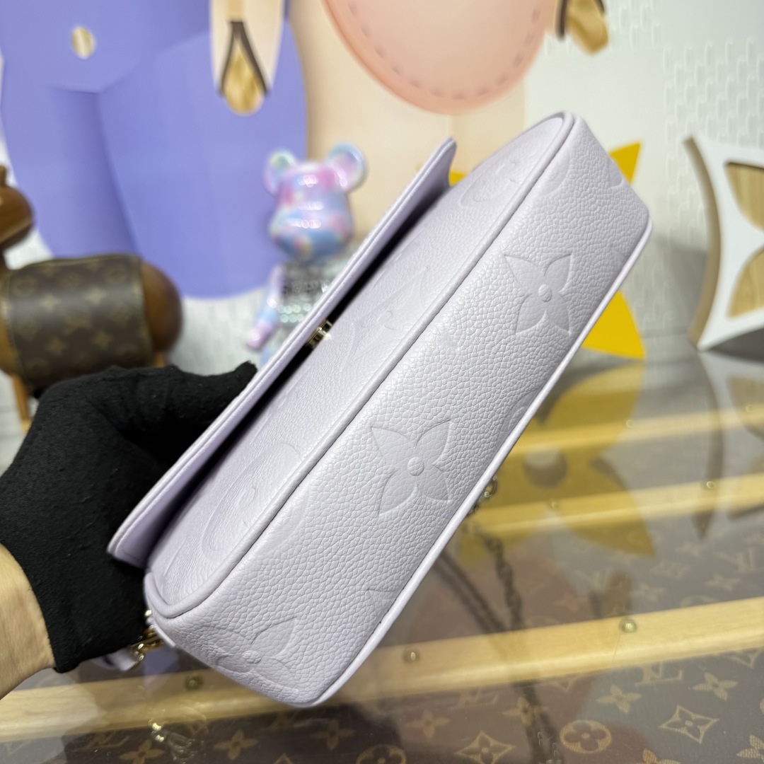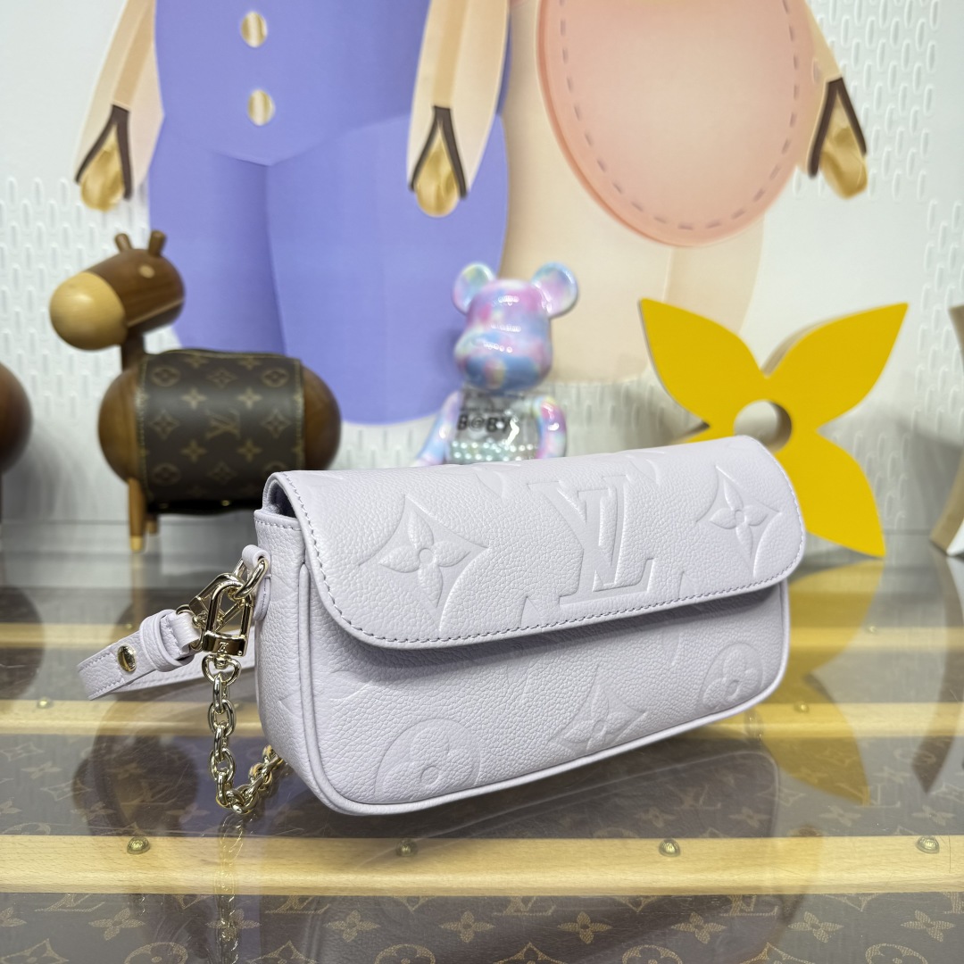 The Wallet On Chain Ivy was originally inspired by the Sac Recoleta from the 00s. This seasonal update showcases a fresh Misty colorway in signature Monogram Empreinte leather. It is adorned with light gold-toned hardware, including a removable chain, and features several pockets and card slots inside. While it might be petite in size, it is capacious enough to store everyday essentials.