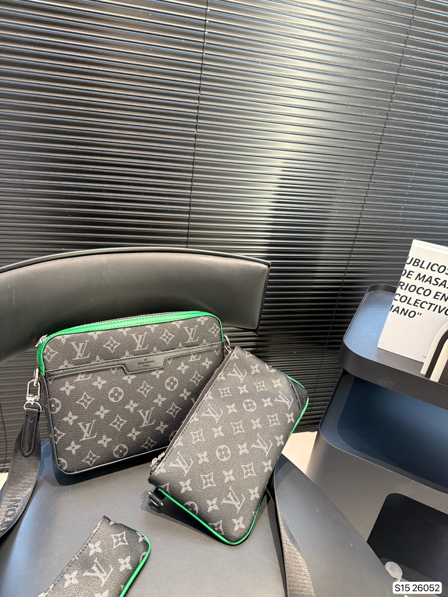 The modular, and highly versatile, Trio Messenger is made from Monogram Eclipse coated canvas with touches of bold colored cowhide leather to bring a contemporary feel. The Trio is composed of a main pouch, a removable front zipped pocket, and a small detachable coin purse on the strap. Each of which can be used separately.