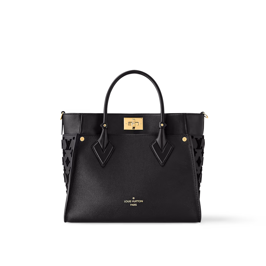 The perfect everyday bag, the On My Side MM tote is crafted in micrograin calfskin with discreet side panels embellished with Nappa Softy leather with Monogram tufting. The practical and generous bag adopts A4 size and square design. It is spacious enough to hold all necessities. It has two leather handles for hand carry and a shoulder strap for cross-body carrying.