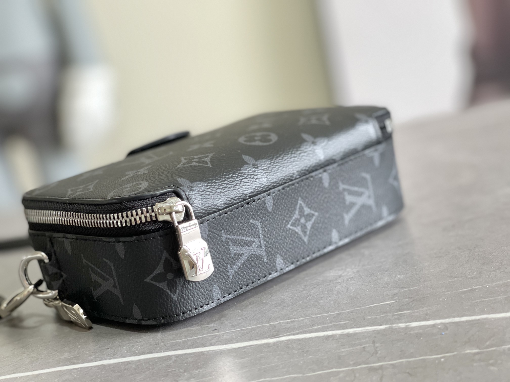 The M81260 Alpha Wearable Wallet is crafted from grained cowhide leather with metal hardware, and comes with a removable and adjustable shoulder strap. Its accordion-style structure offers ample space for a phone, cash, cards, and other daily essentials.