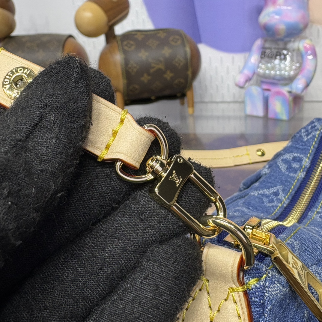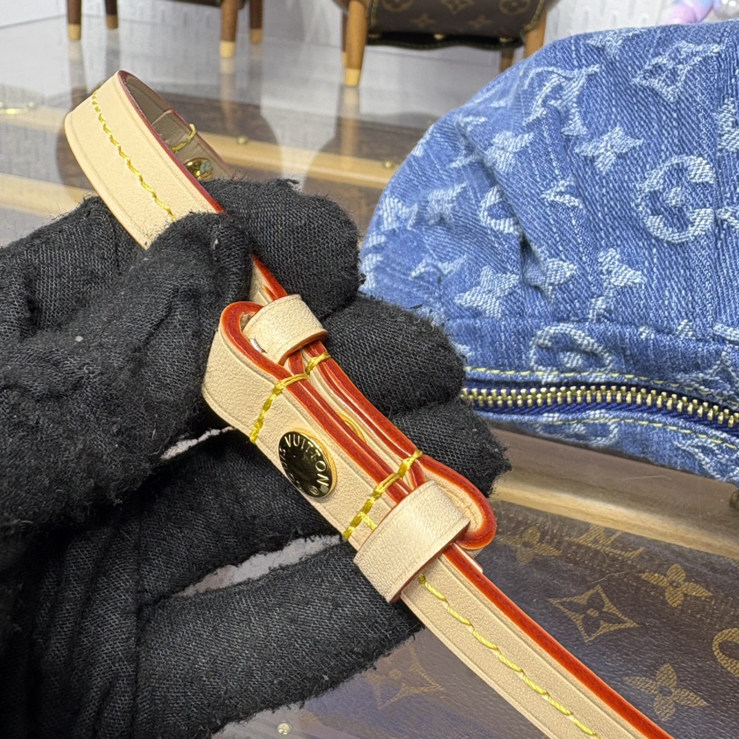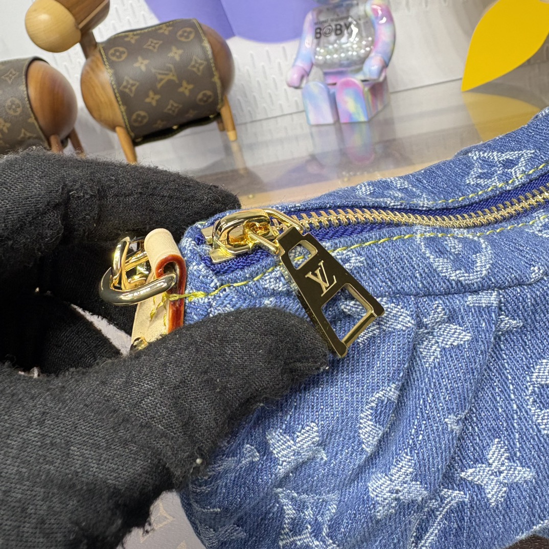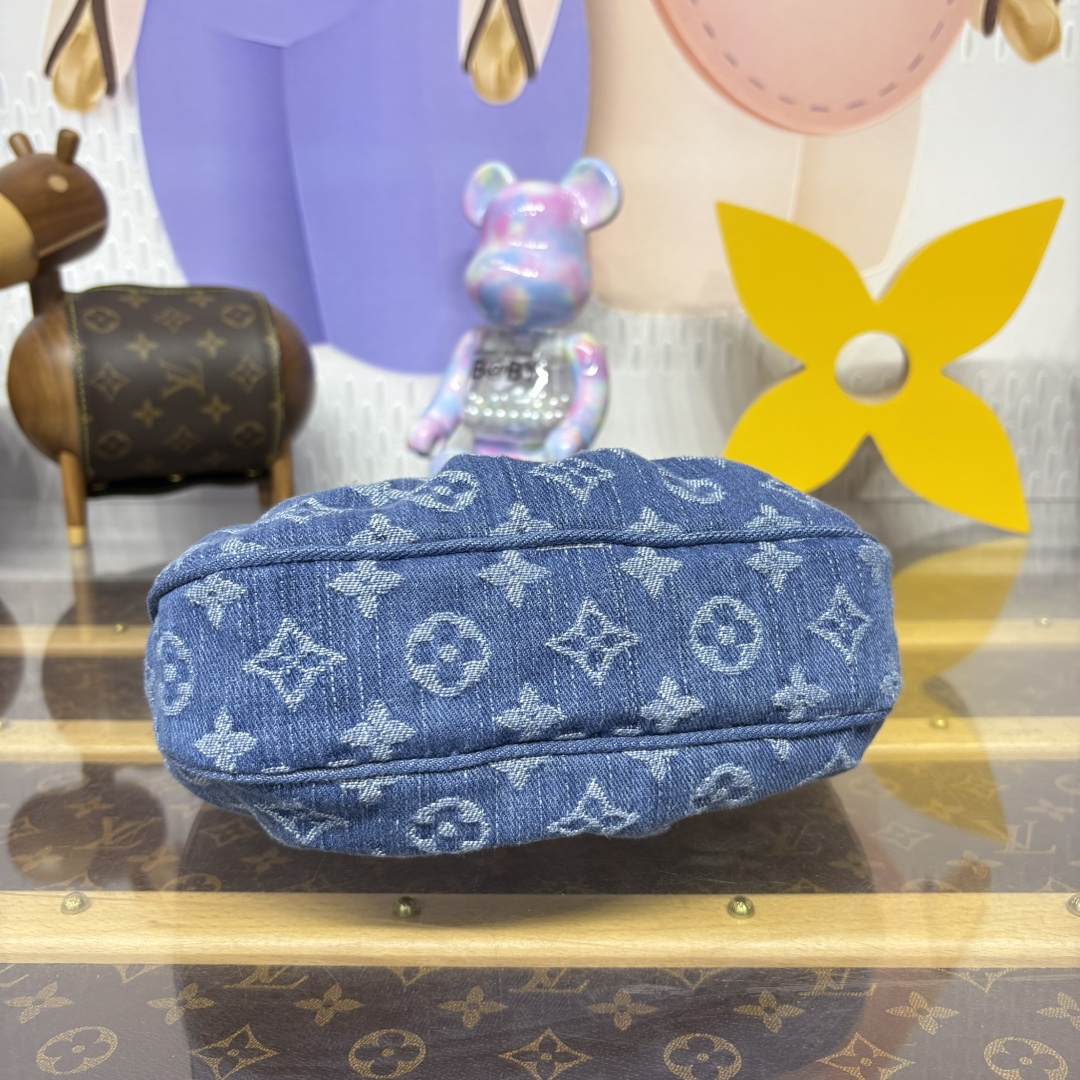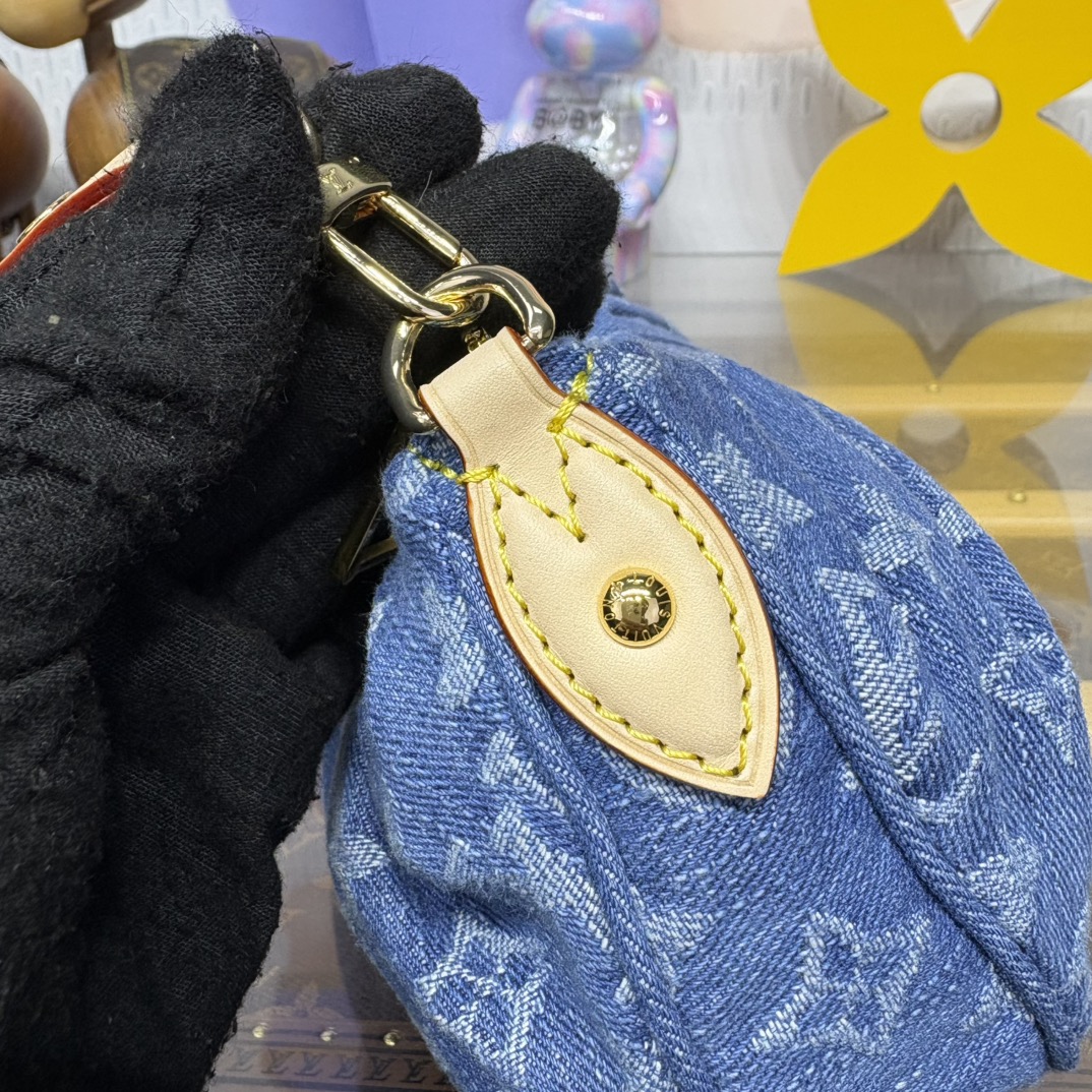 The Pochette Valley handbag is reimagined in Monogram Denim, offering a contemporary take on the classic design. It is made from organic cotton, trimmed with cowhide leather in a contrasting neutral tone that complements the gold-toned hardware. The handle is removable so it can be carried as a pochette, just as its name suggests.