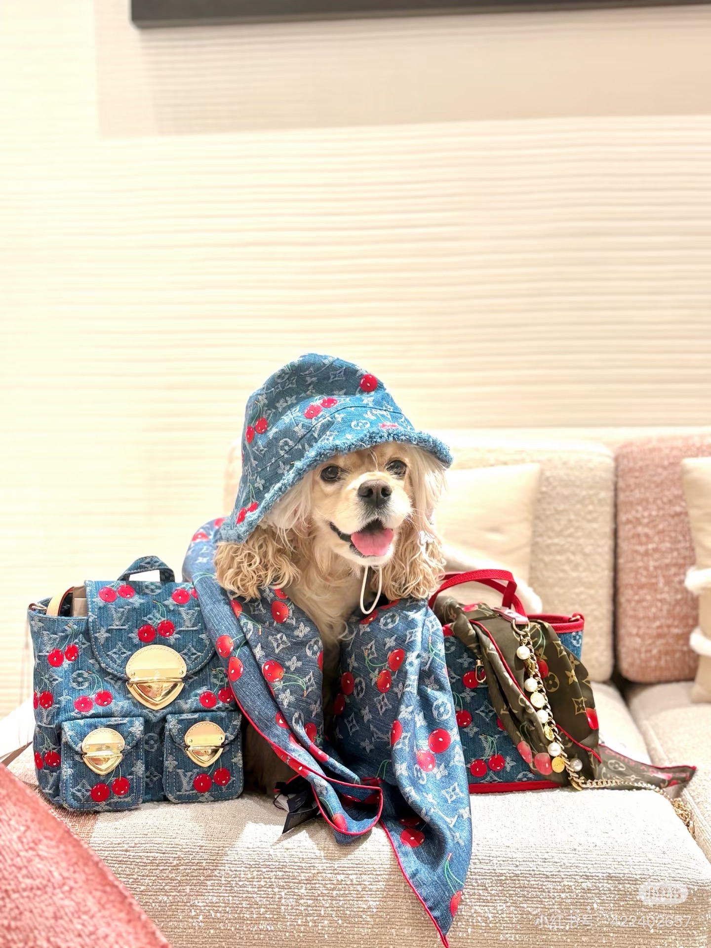 The Venice backpack is playfully revisited as part of the joyful re-edition of the Louis Vuitton x Murakami collection. It is crafted from Monogram denim detailed with statement embroidered cherry motifs in the Japanese artist’s signature colorful aesthetic. The slim straps are highlighted in natural leather, while the flap and two outside pockets are finished with chunky golden tuck locks.