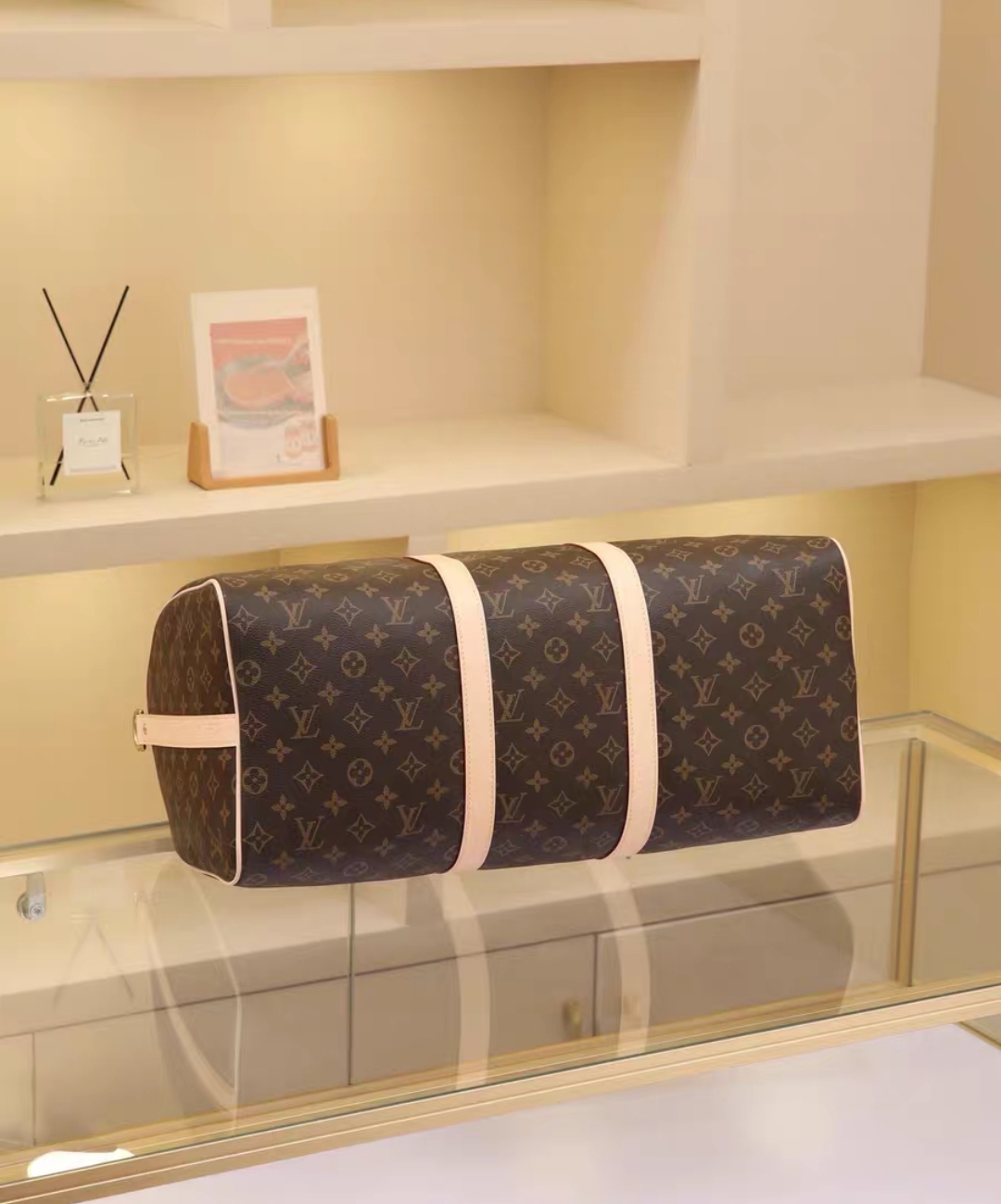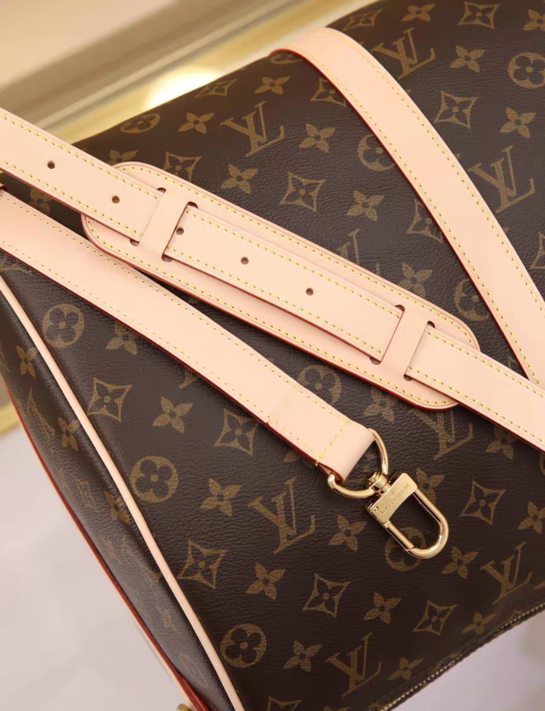 An icon since the appearance in 1930, the Keepall embodies the spirit of modern travel. Light, supple and always ready for immediate departure, the bag lives up to its name: those adept at the art of packing can easily fit a week’s wardrobe into the generously sized (and cabin-friendly) Keepall 55. Shown here in classic Monogram Canvas, with a strap for casual cross-body wear