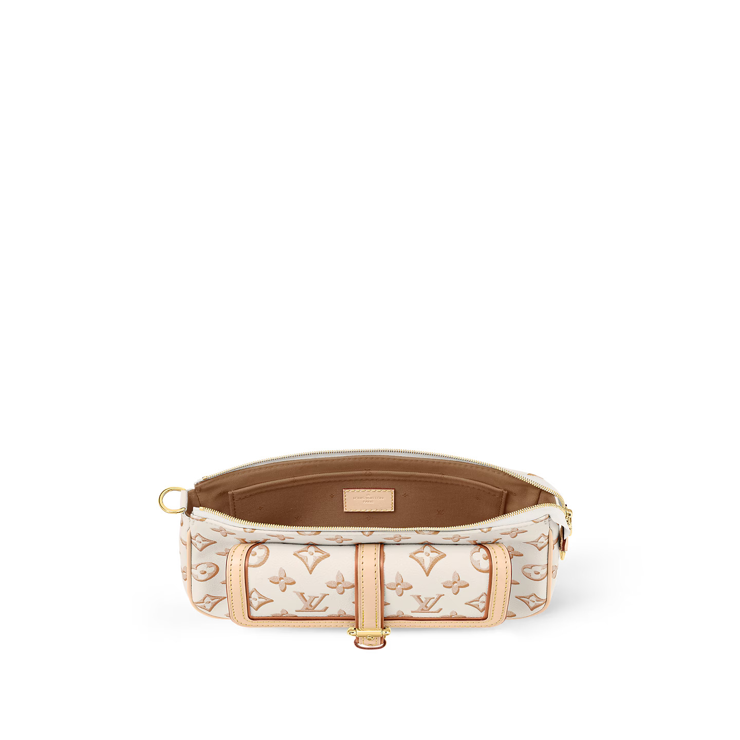 Featuring a gold-color buckle on its front pocket, the Maxi Pochette Accessoires handbag is made from colored Monogram canvas. Gorgeous details such as white borders on the pocket flap and strap and the shaded miniature Monogram pattern bring the House’s iconic style. The perfect micro bag, it enables elbow carry or sporty-chic cross-body wear.