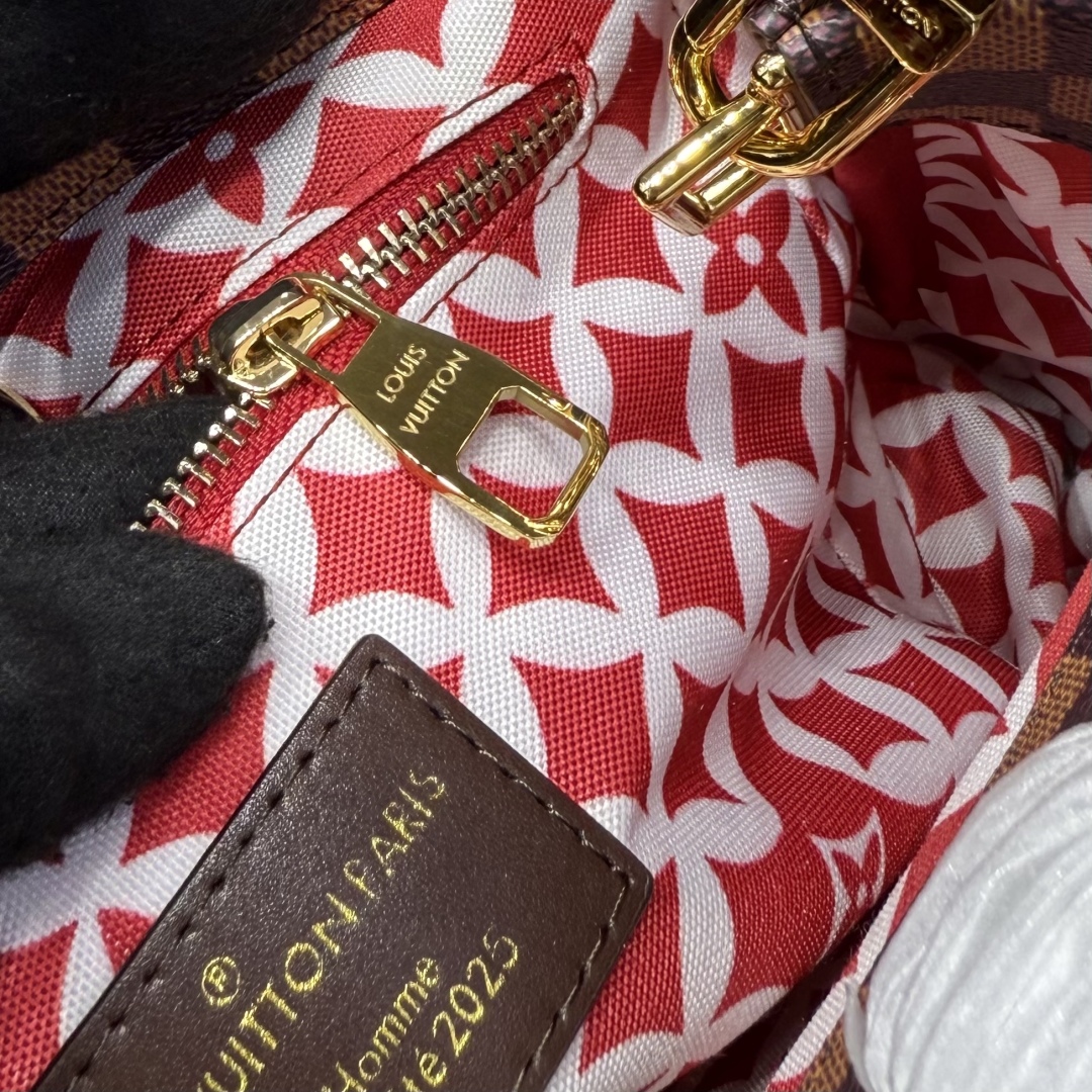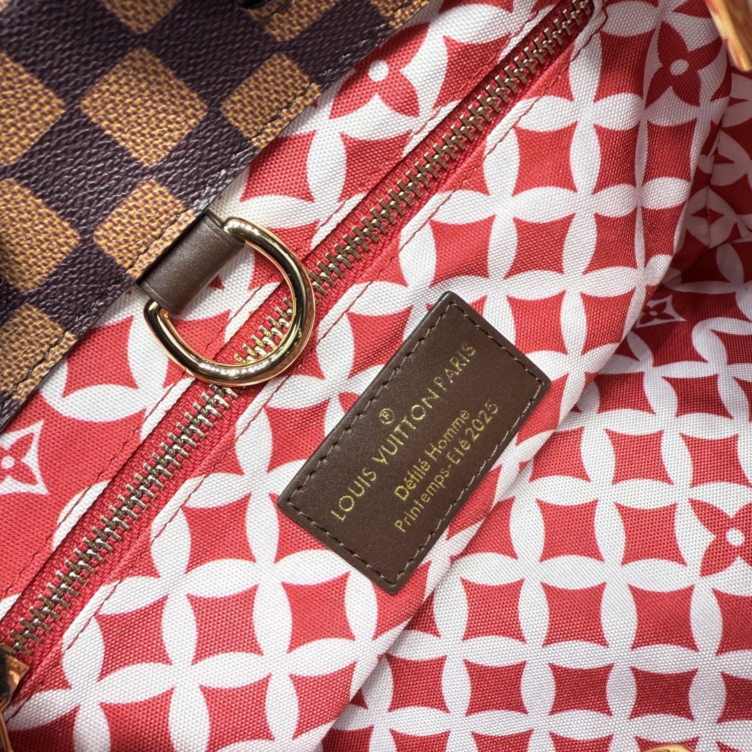 The Mini Shopper Tote is a small carry-all inspired by the design of the classic Louis Vuitton shopping bag. Crafted from Damier Ebene coated canvas, the bag features the faces of Pharrell Williams and Nigo, the Japanese designer who collaborated with Williams on the Fall-Winter 2025 collection.