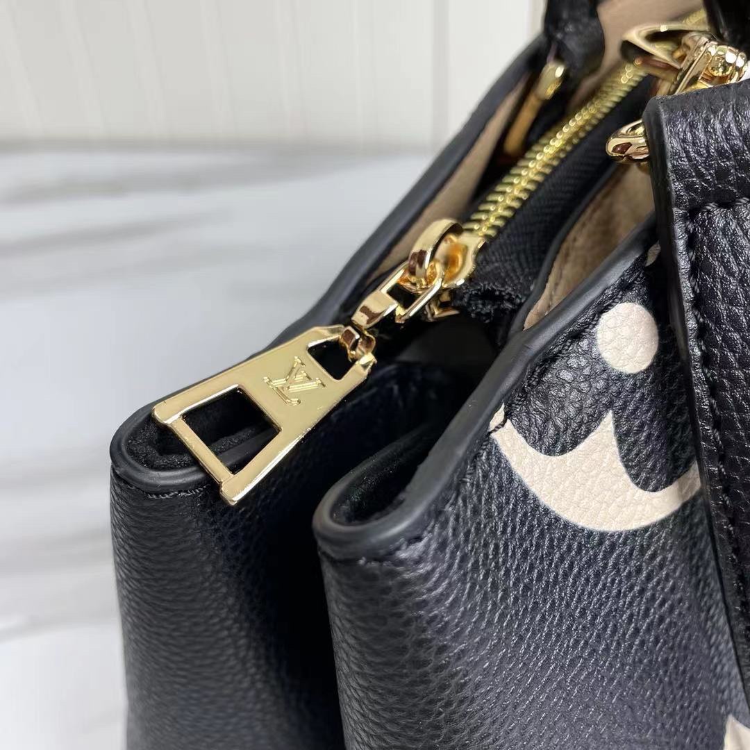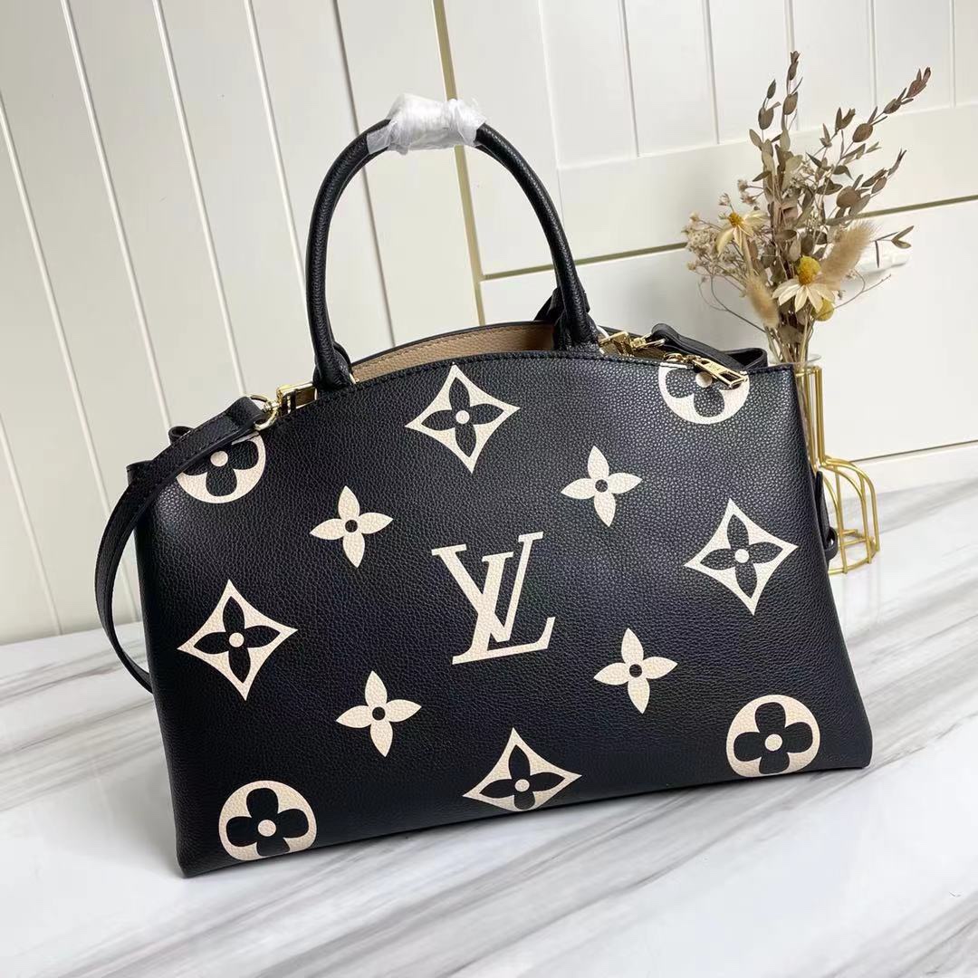 This stylish and sophisticated Petit Palais handbag is made of grained cowhide, printed with an extra-large Monogram floral pattern and embossed LV logo, and is suitable for daily use.
