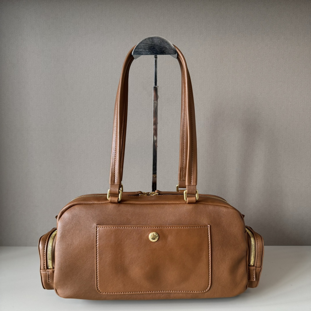 The functional design of the Pocket bag is enriched with this larger version in soft washed nappa leather that gives the silhouette a versatile, vintage look enhanced by multiple pockets and refined hardware.