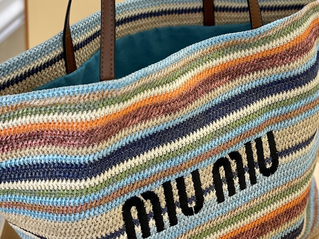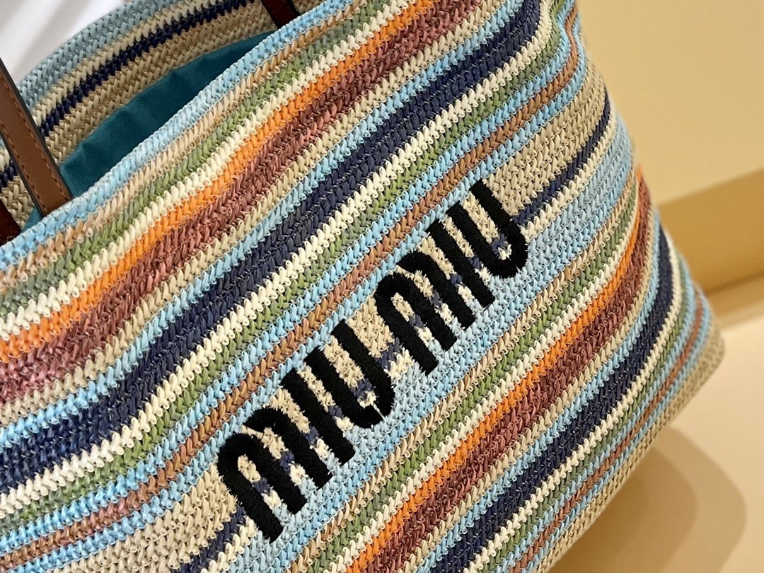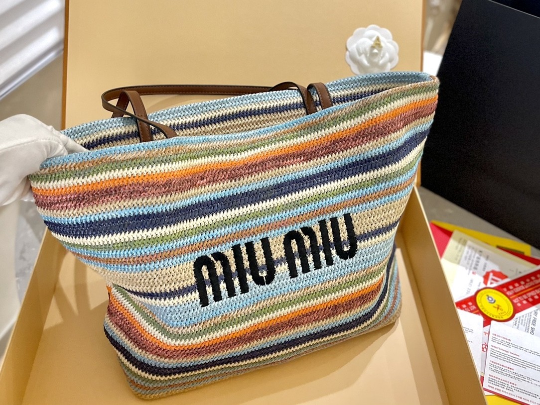 Miumiu straw woven shopping bag Raffia straw shopping bag Trending style, super cute Soft and gentle,
