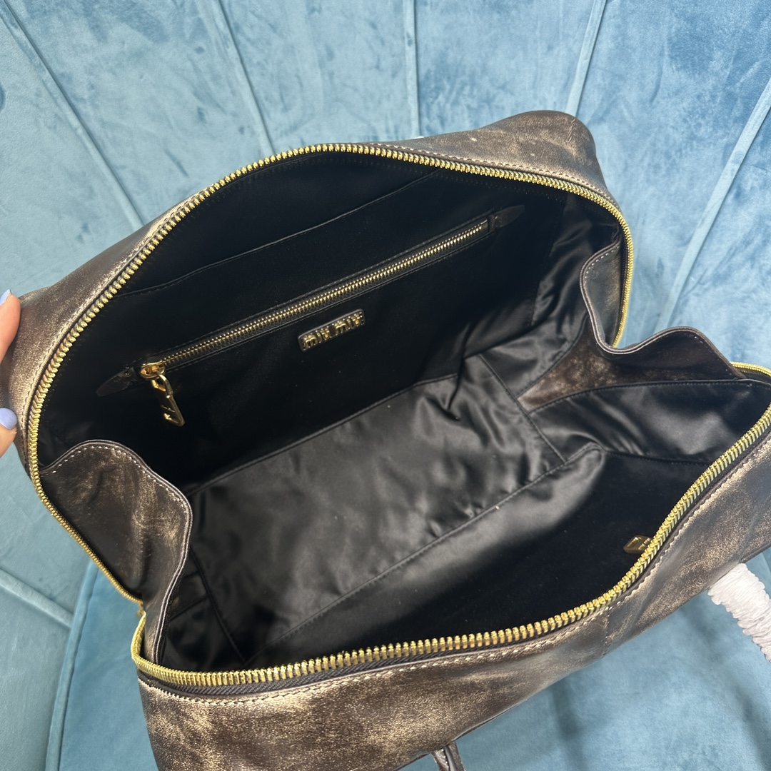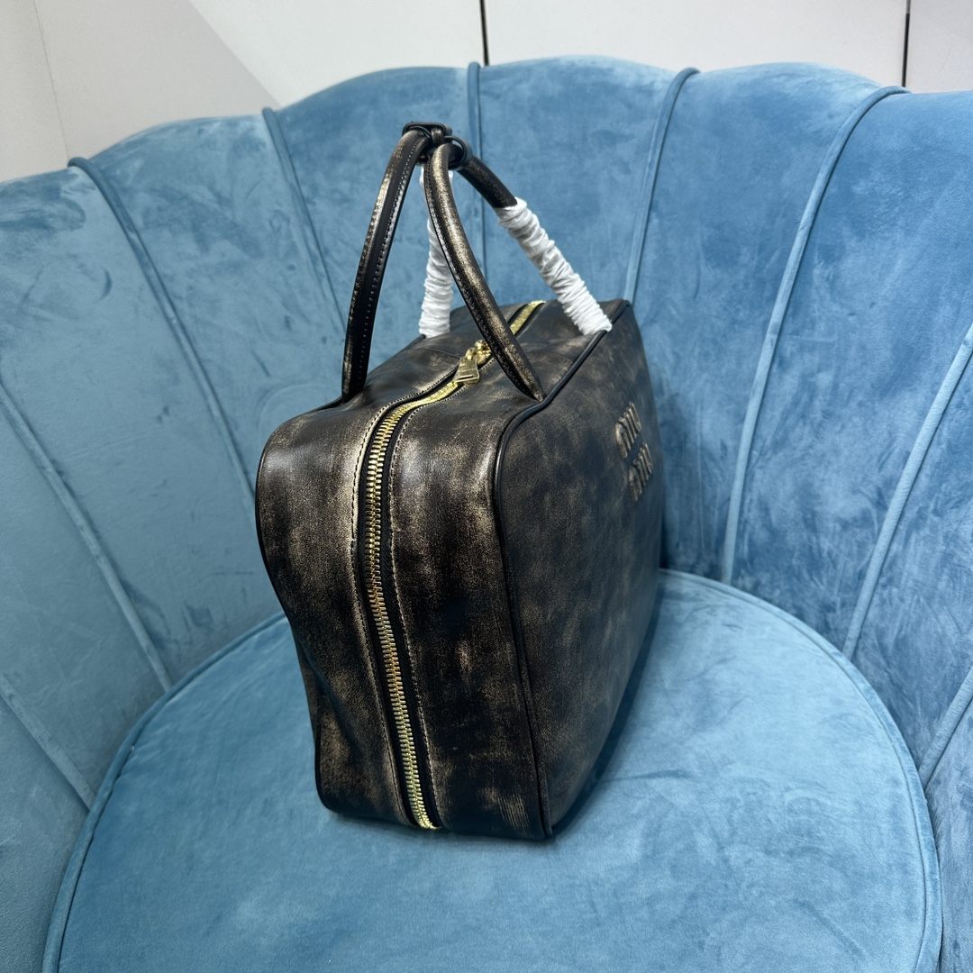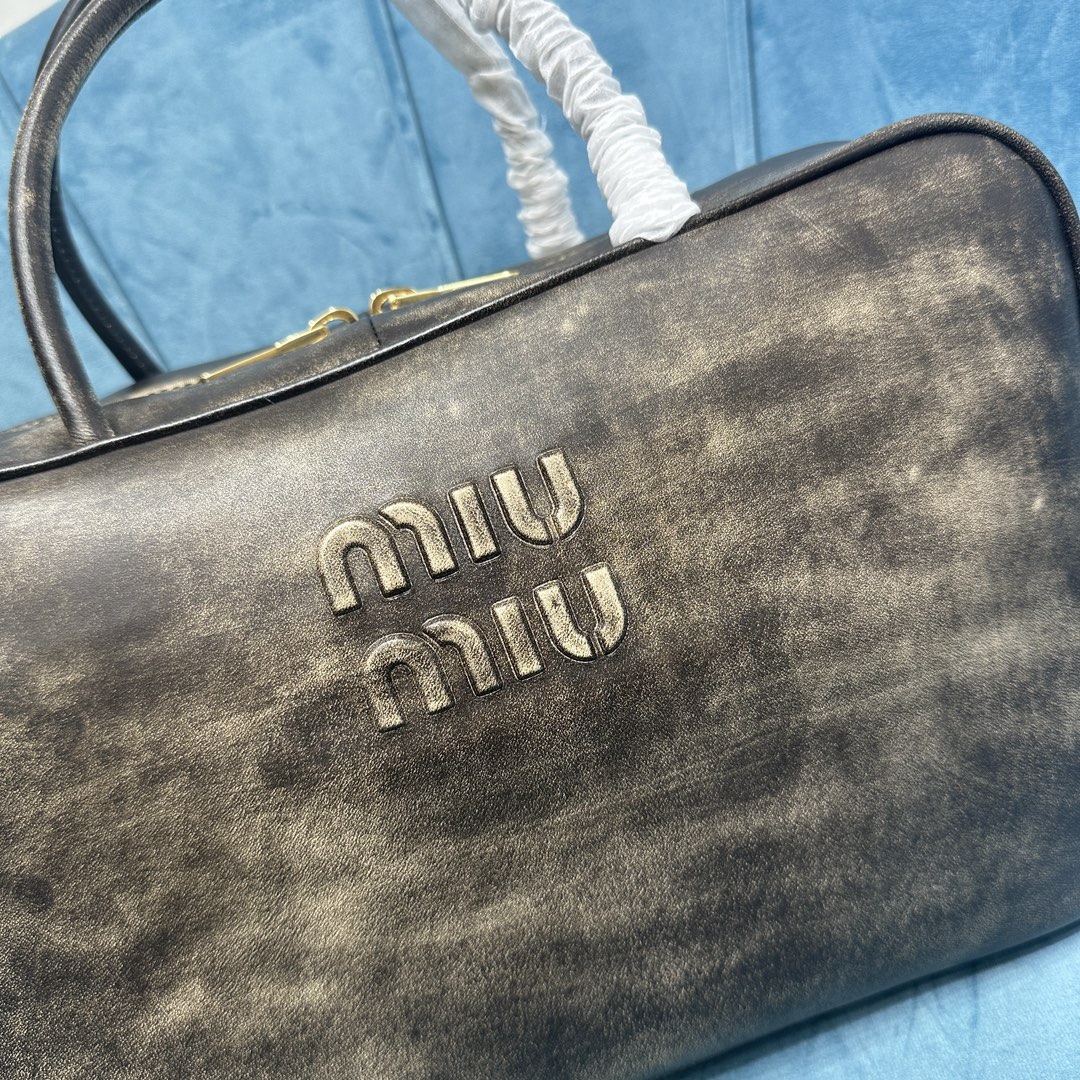The new Miu Miu bowling bag is crafted from top-quality imported calfskin, featuring a smooth, delicate, and soft texture, with a cotton satin lining. This bag is very stylish with its refined, multifunctional design that blends both menswear and womenswear elements. It exudes a casual, laid-back vibe and is full of personality. With its large capacity and lightweight nature, it's both minimalist and sophisticated. Almost every fashion blogger has one.
