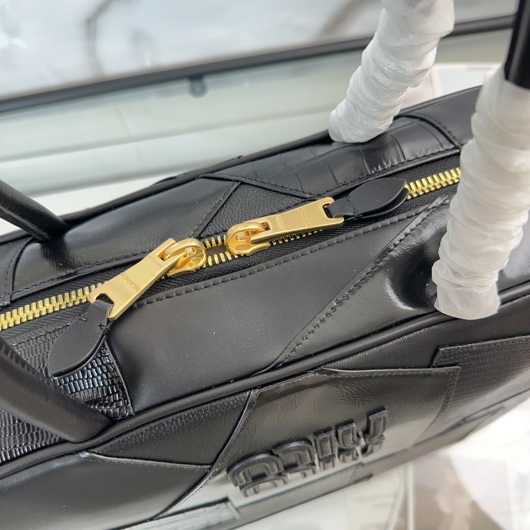 Handcrafted with multiple types of leather spliced together, this boldly innovative design perfectly embodies Miu’s eclectic and carefree attitude towards life. This bag is very cool, featuring a refined multifunctional design that blends elements of both menswear and womenswear. It is casual, relaxed, and full of personality. With a super large capacity yet lightweight, it includes a brand-new canvas lining and has become a global sensation, loved by major fashion bloggers and celebrities alike. Size: 34x23x12 cm