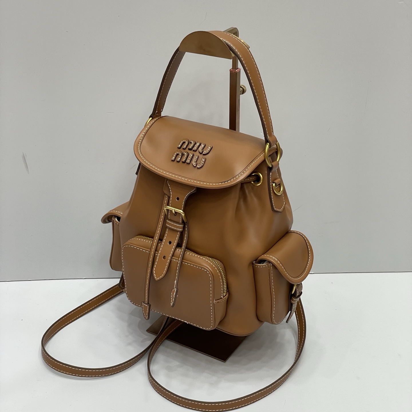 Miu Miu 25ss is a popular small backpack in spring. It is made of brown calfskin with the design of miu English letters. It is too high-end. The two small pockets on the left and right are too cute. It can be carried by hand or on the shoulder at will. One bag can unlock various styles. Sisters, you will not regret it!