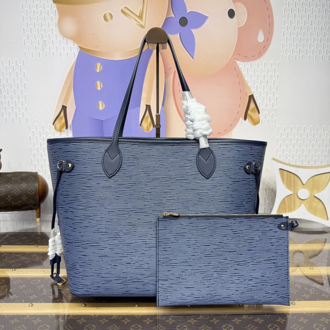 Designed with a cool denim-blue finish, the Neverfull MM handbag strikes the balance of directional and timeless. It is crafted from signature Epi leather adorned with gold-toned hardware.The interior offers a removable monogram zipped pouch, and is lined in Monogram denim. Use the side laces to cinch the silhouette, wearing it over the shoulder or carried by hand.