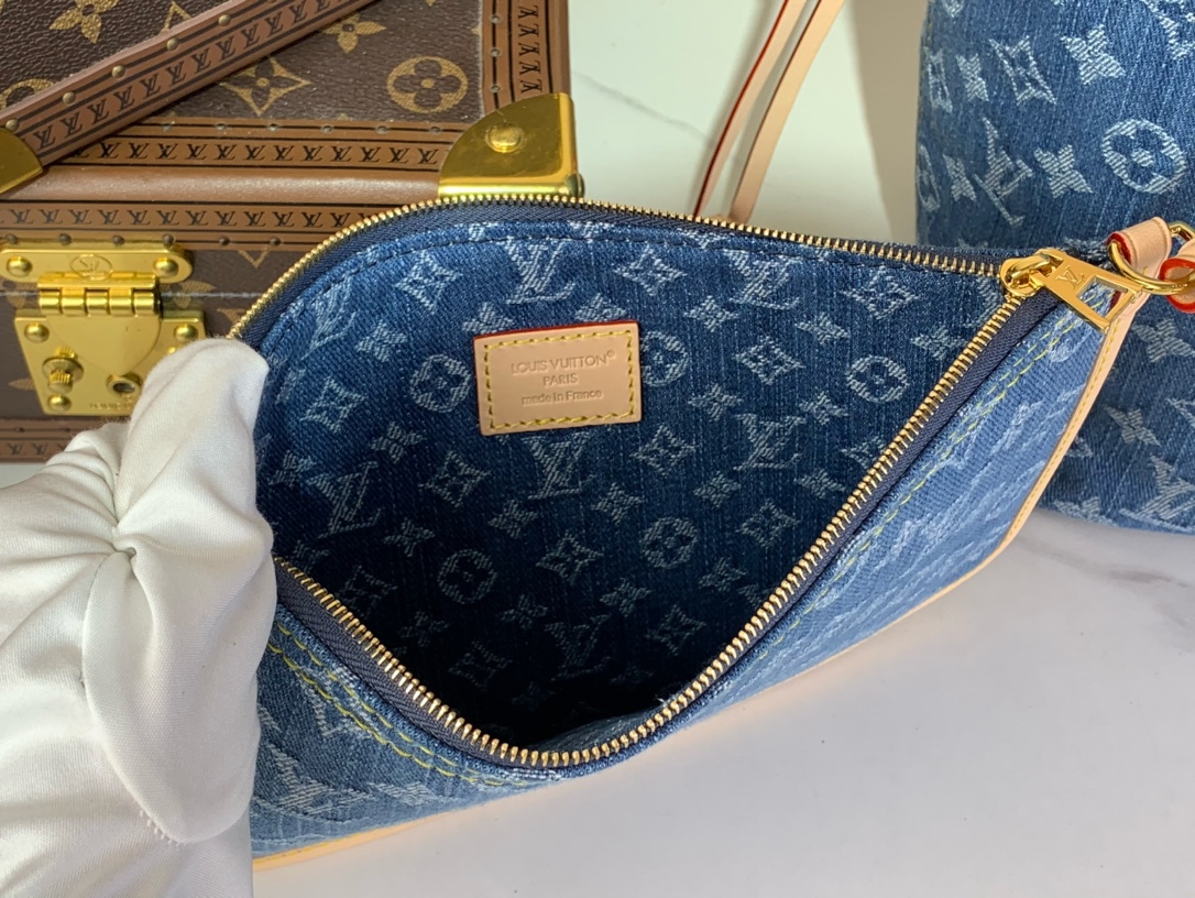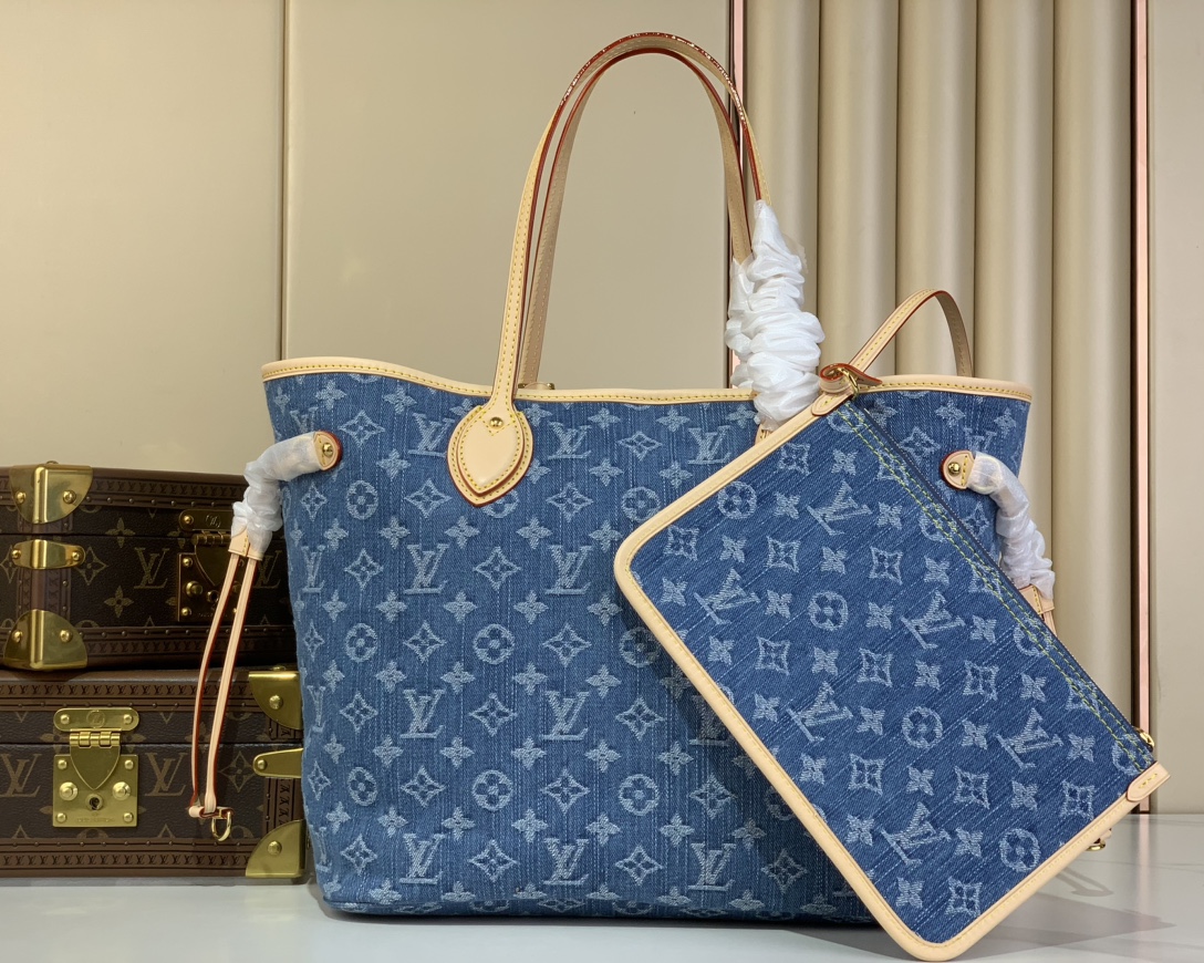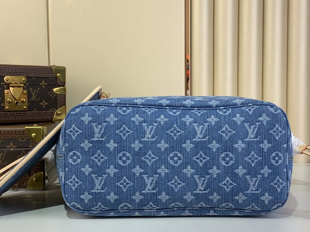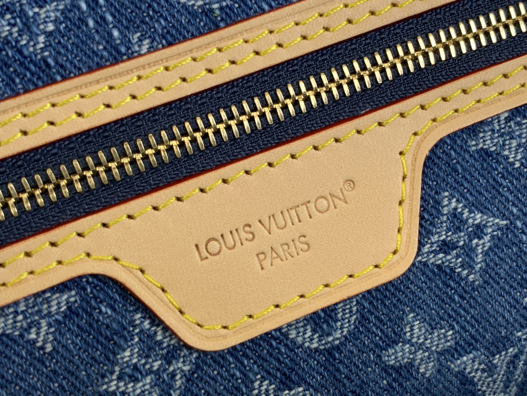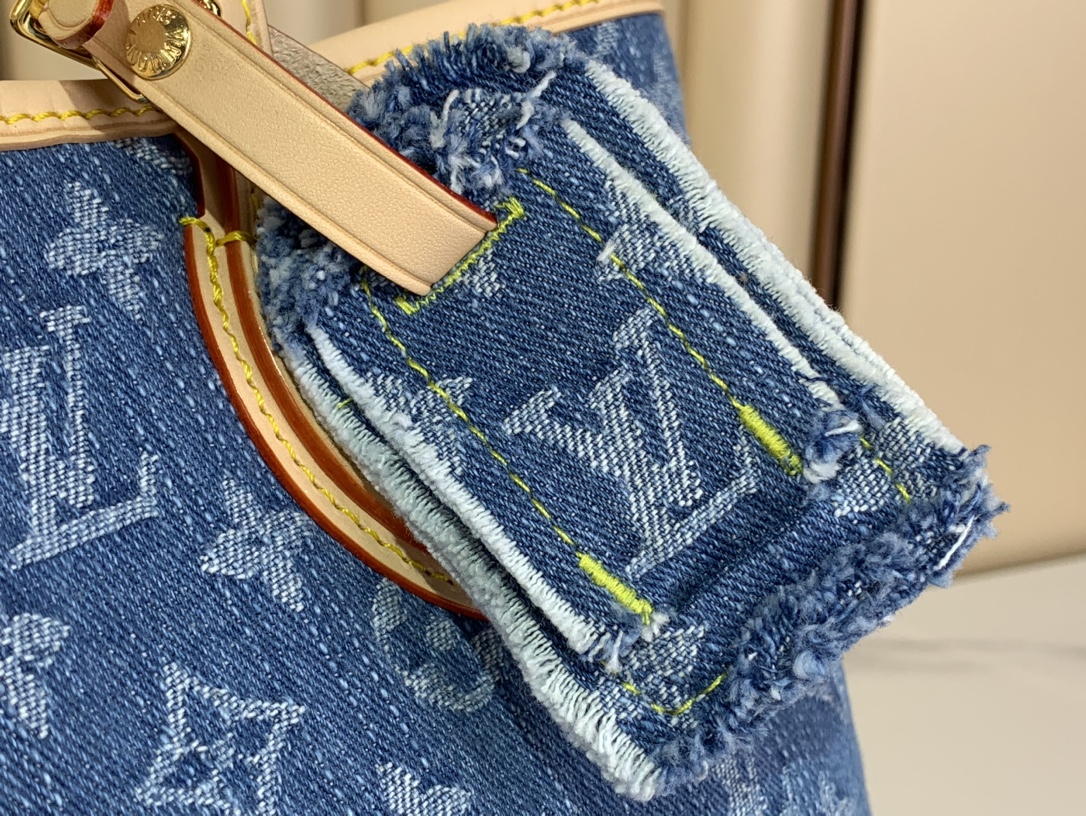 Ideal for city commutes and beyond, the iconic Neverfull MM tote is updated for the season in timeless Monogram denim. Detailed with signature natural cowhide leather trimmings, it has adjustable side laces to cinch the silhouette, which is generously sized to store a 13” laptop. The interior is fitted with multiple pockets, including a removable zipped pouch.