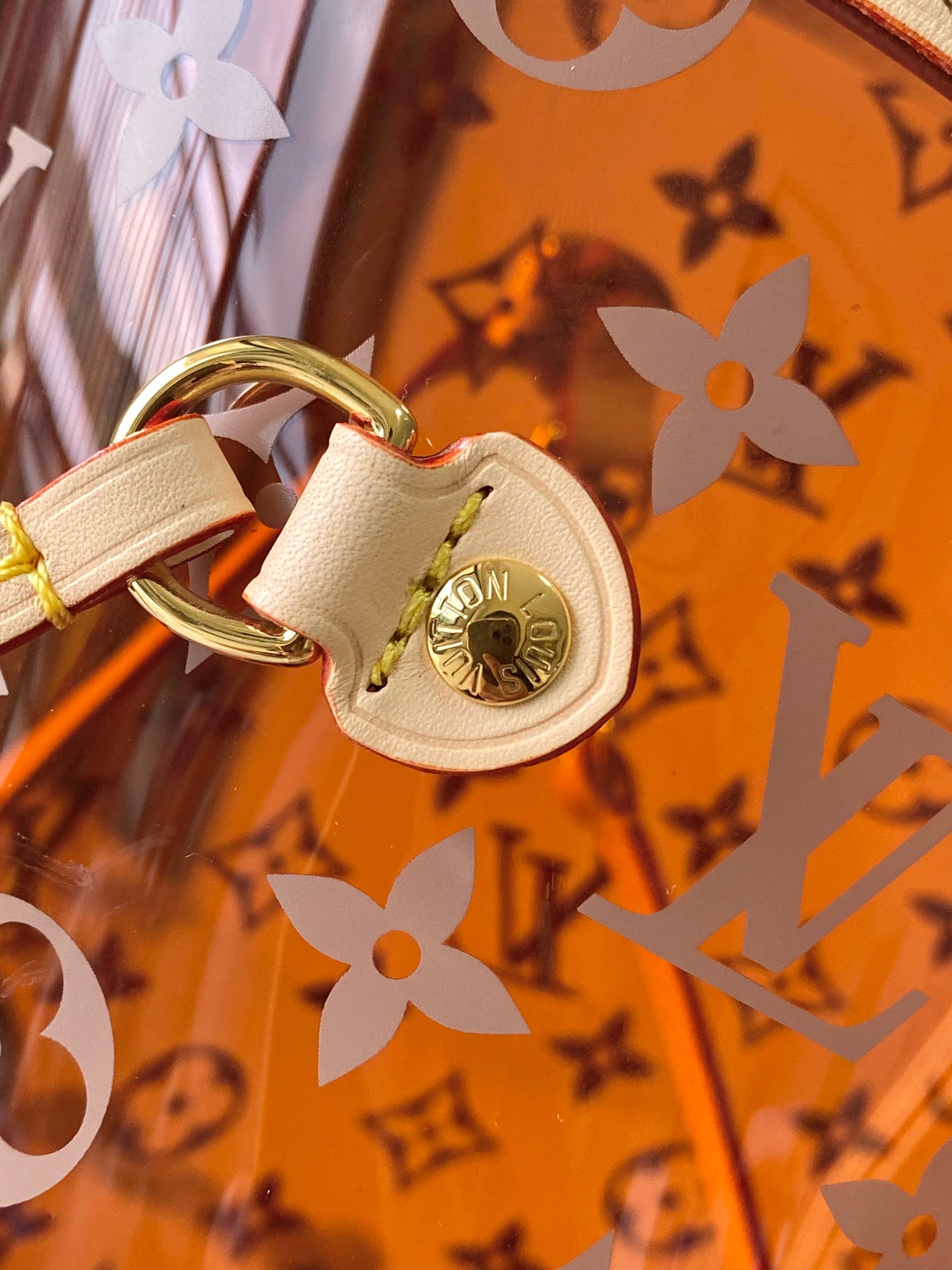 This Neverfull GM tote features a striking semi-transparent PVC material that reinvents the classic Monogram canvas silhouette with a modern, lightweight twist. Crafted from recycled polyester fibers combined with high-quality imported Monogram canvas, the bag is both stylish and environmentally conscious.