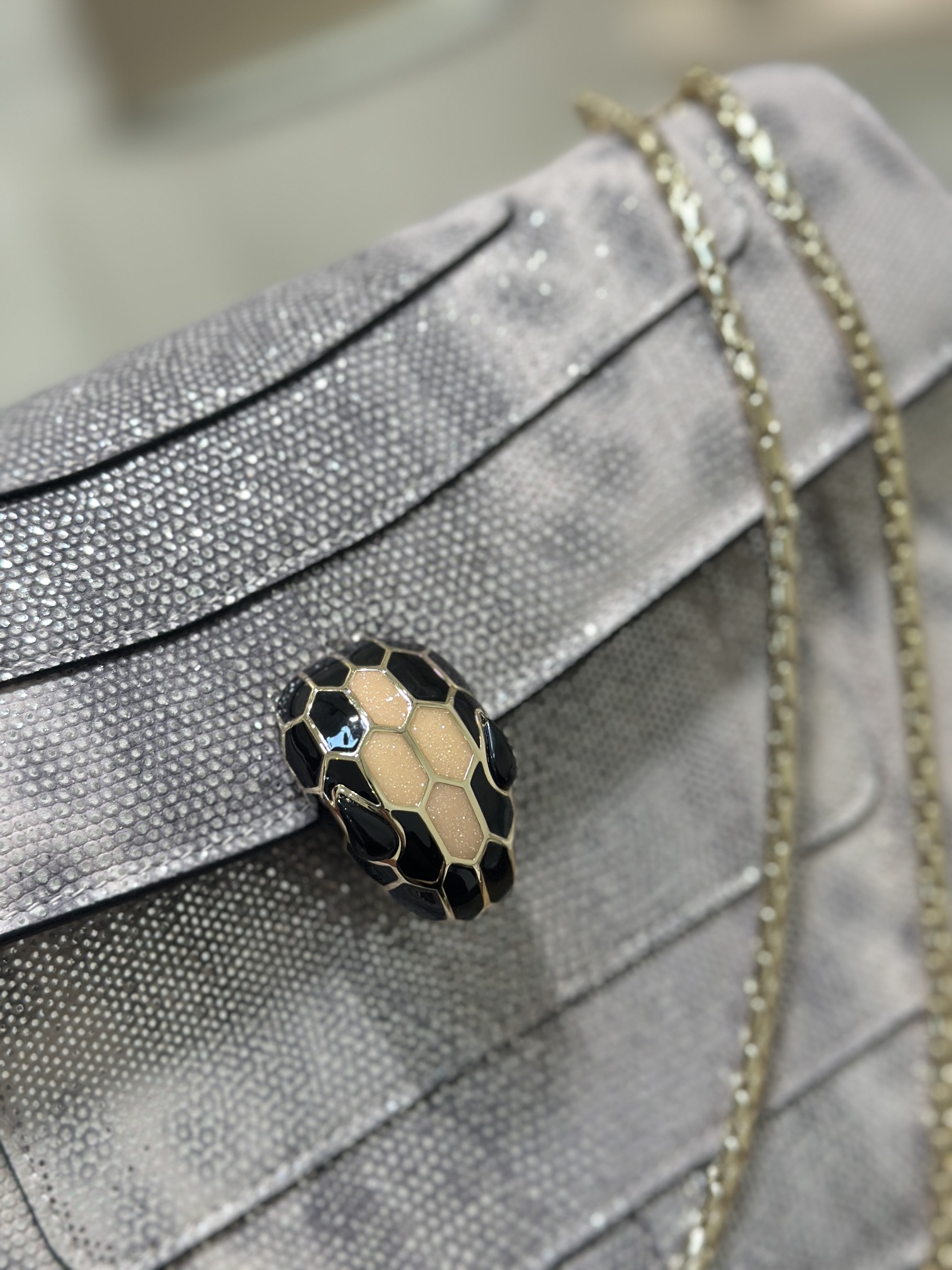 Style: Celestial glamour—drapes like liquid stardust over evening gowns or edgy cocktail looks. Perfect for collectors of reptilian opulence. 👜🐍✨