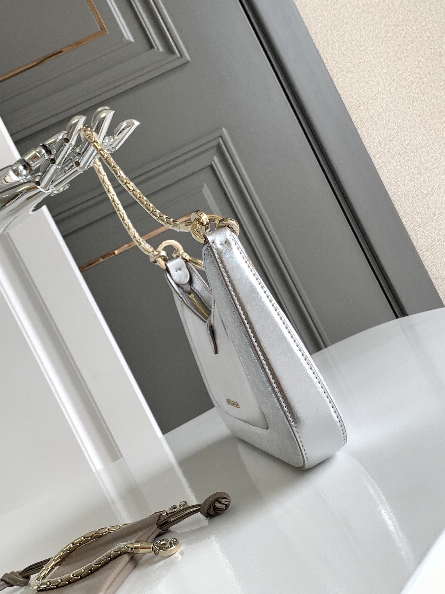 Material: Silver-textured calfskin (metallic sheen, diamond-inclusion-inspired grain)