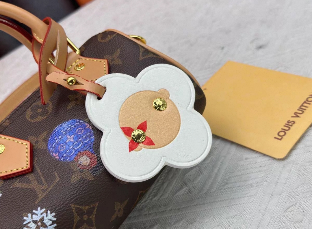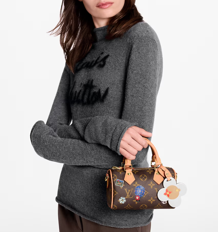 This colorful edition of the Nano Speedy stars the House’s iconic mascot Vivienne. Crafted from signature Monogram canvas, the playful design is decorated with illustrations and includes a Vivienne charm. It is trimmed with leather and is finished with gold-toned hardware for a sophisticated finishing touch.