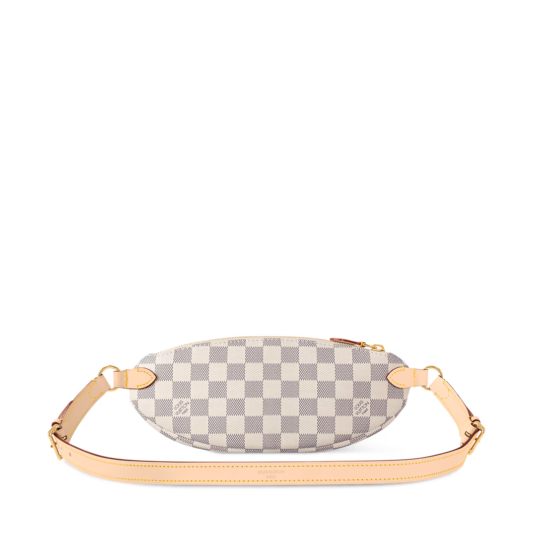Showcasing the House's Damier Azur signature, the Keepit bumbag made its debut on the Spring-Summer 2025 runway. Accented with gold-toned hardware, it comes with an adjustable shoulder strap for multiple ways to wear and includes an outside zip compartment for smaller items. Note the leather tab detail at the front, which is stamped with the Louis Vuitton signature.