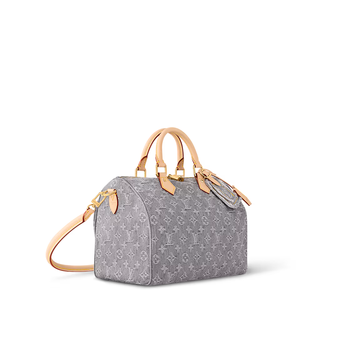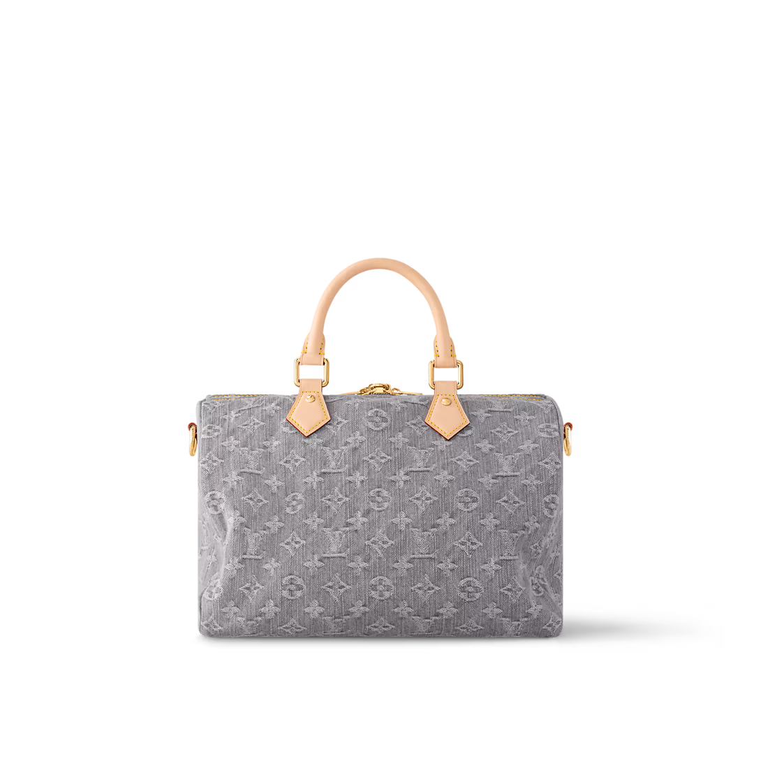The Speedy Soft 30 is reimagined for the season with the return of the iconic 2005 Monogram Denim pattern. Crafted from organic cotton using a specialist LV bleaching technique, it is trimmed with leather and elevated with light gold-toned hardware. Signature details include a keybell and a removable name tag, both of which celebrate the House’s trunk-making heritage. Attach the toron handle for shoulder carry.