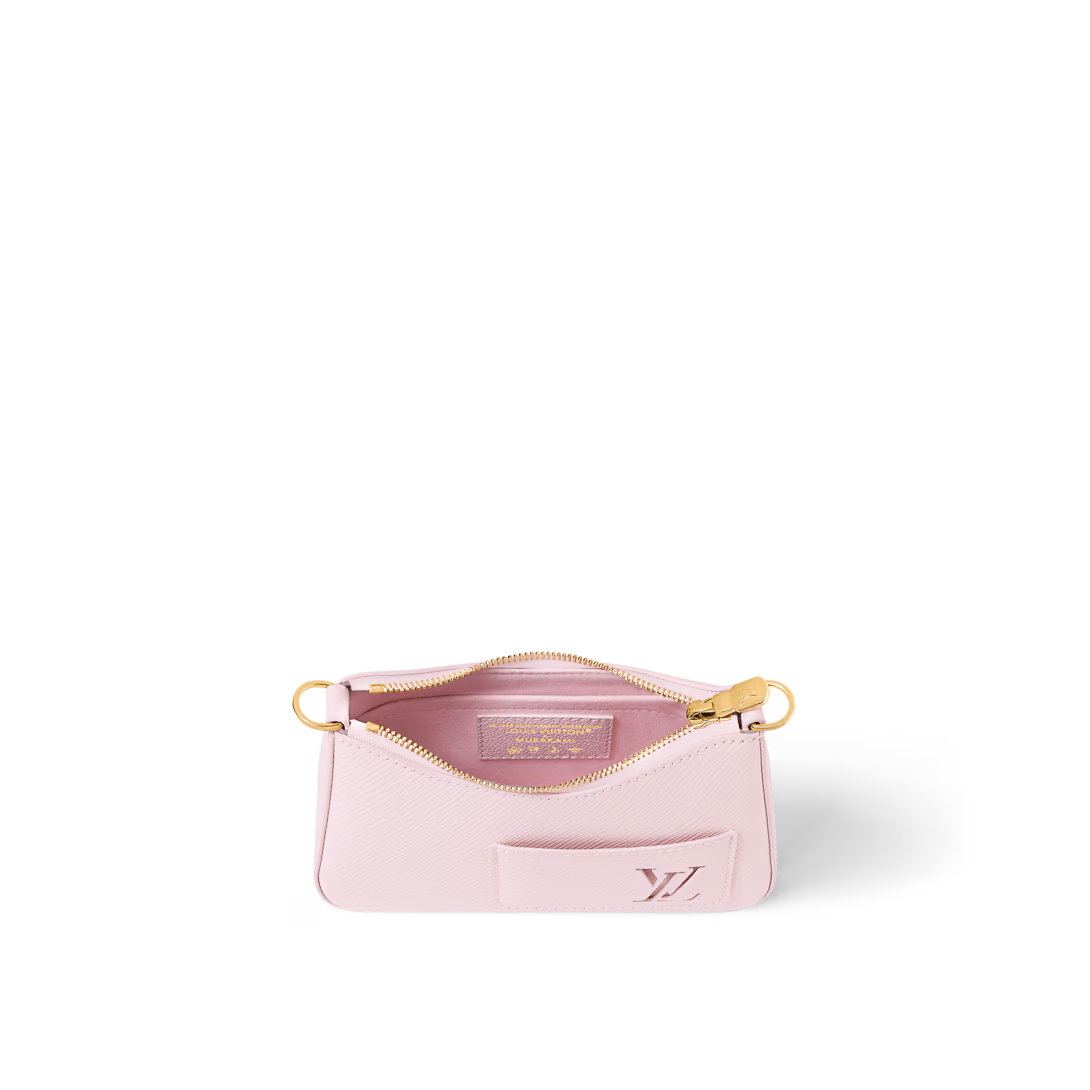 The Marellini handbag is refreshed with playful signatures from the re-edition of the Louis Vuitton x Marakami collection. Crafted from the House’s signature Epi grained leather, the Cheeky Pink colorway is uplifted with gleaming golden hardware, while the removable mirror strikes a contrast in Monogram canvas detailed with Cherry Blossom motifs. A coordinating Cherry Blossom bag charm completes the look with a final seasonal statement.