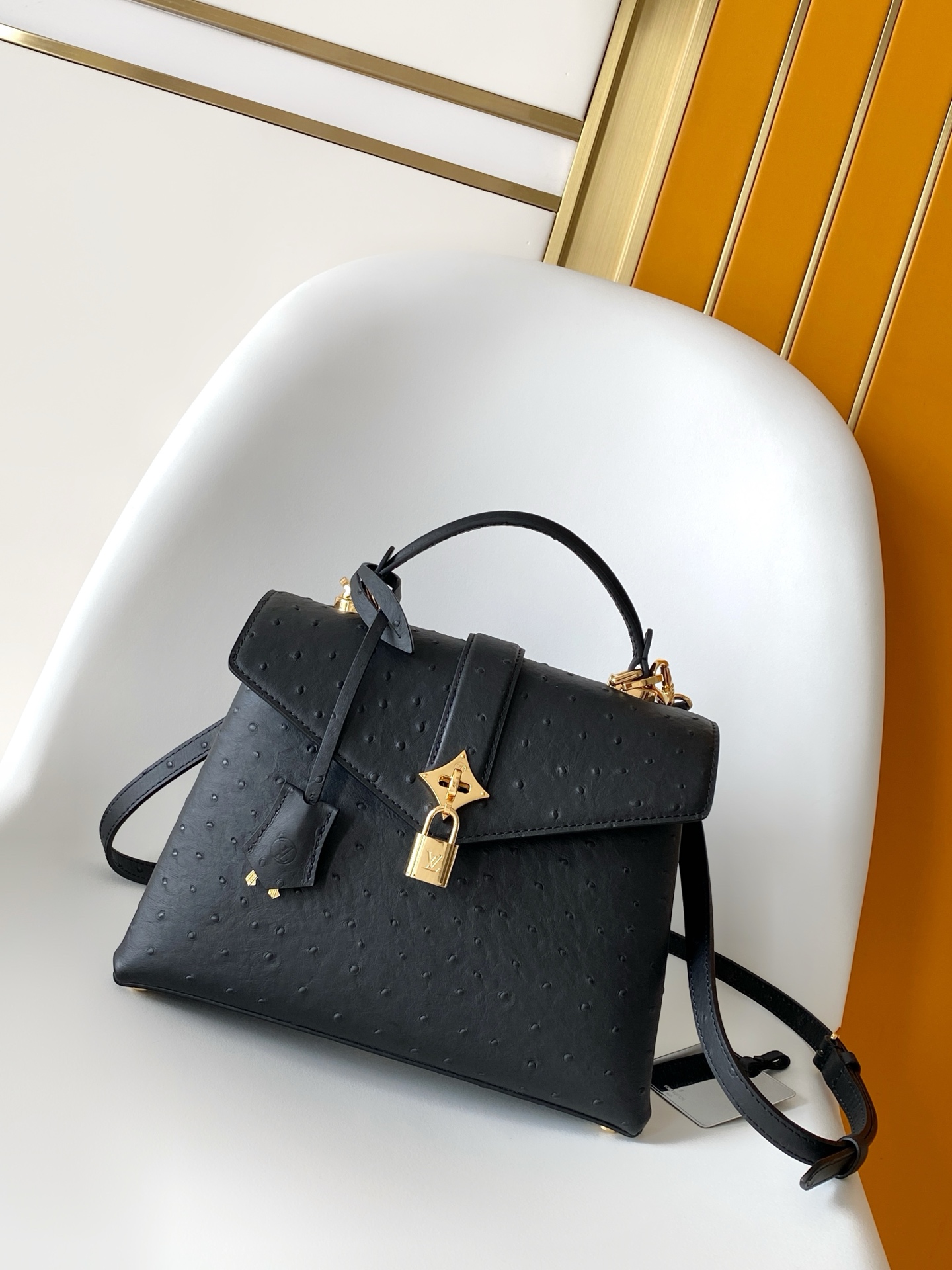 The Rose des Vents bag is crafted from a combination of smooth and grained calf leather, tracing graceful lines that define its elegant silhouette. Accented with a gleaming gold-tone LV padlock, it radiates refined charm. Featuring a top handle and a removable, adjustable strap, the bag can be carried gracefully by hand or worn crossbody for everyday versatility.
