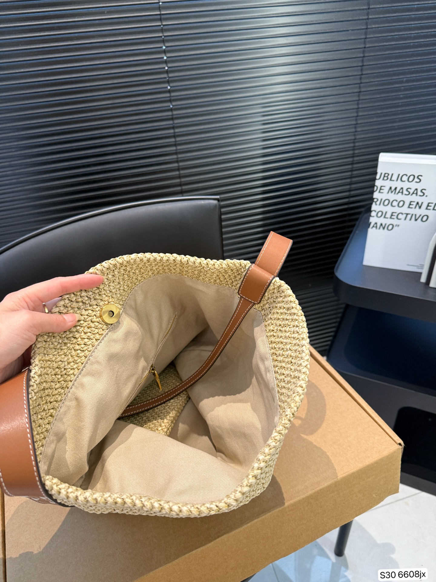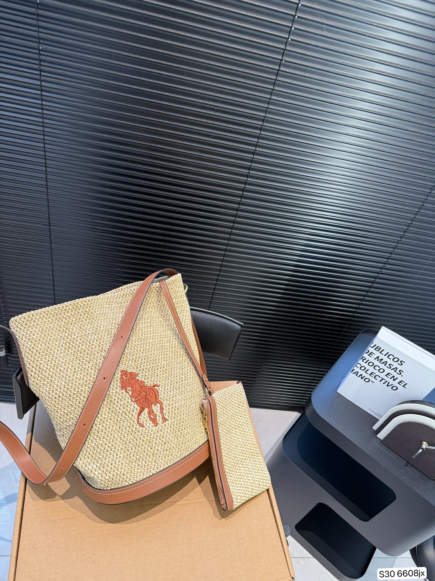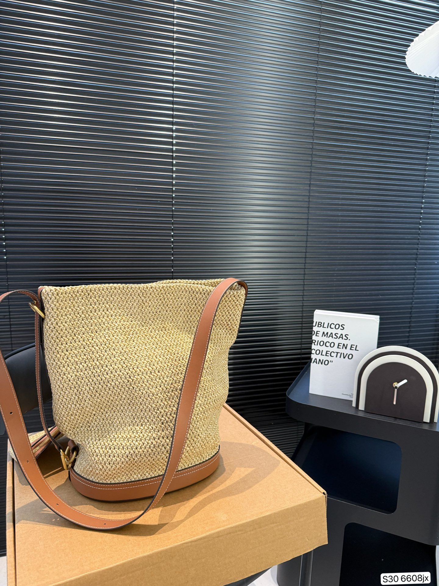 - Adjustable leather shoulder strap with a 17" maximum drop. Brass D-ring and toggle hardware at the strap.