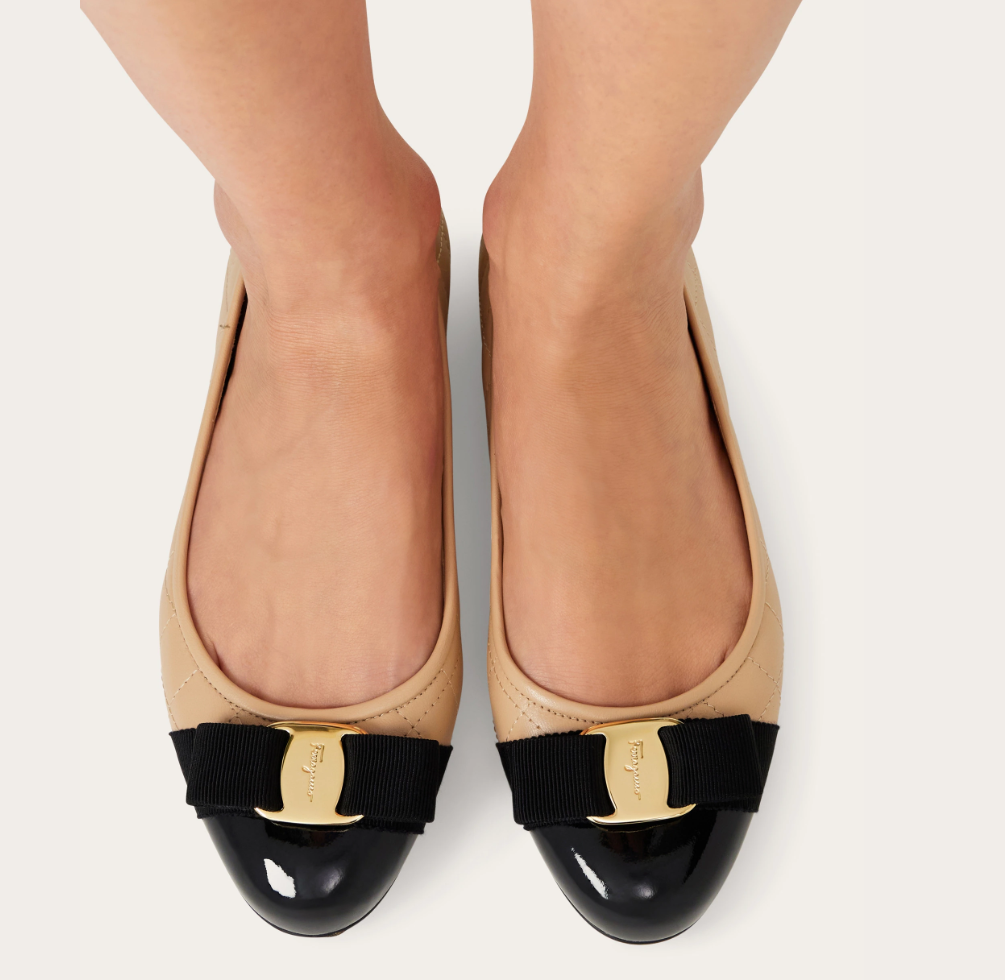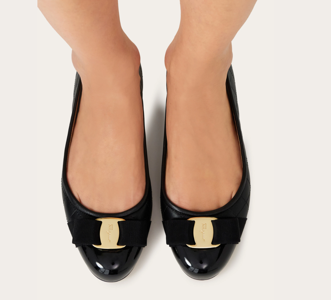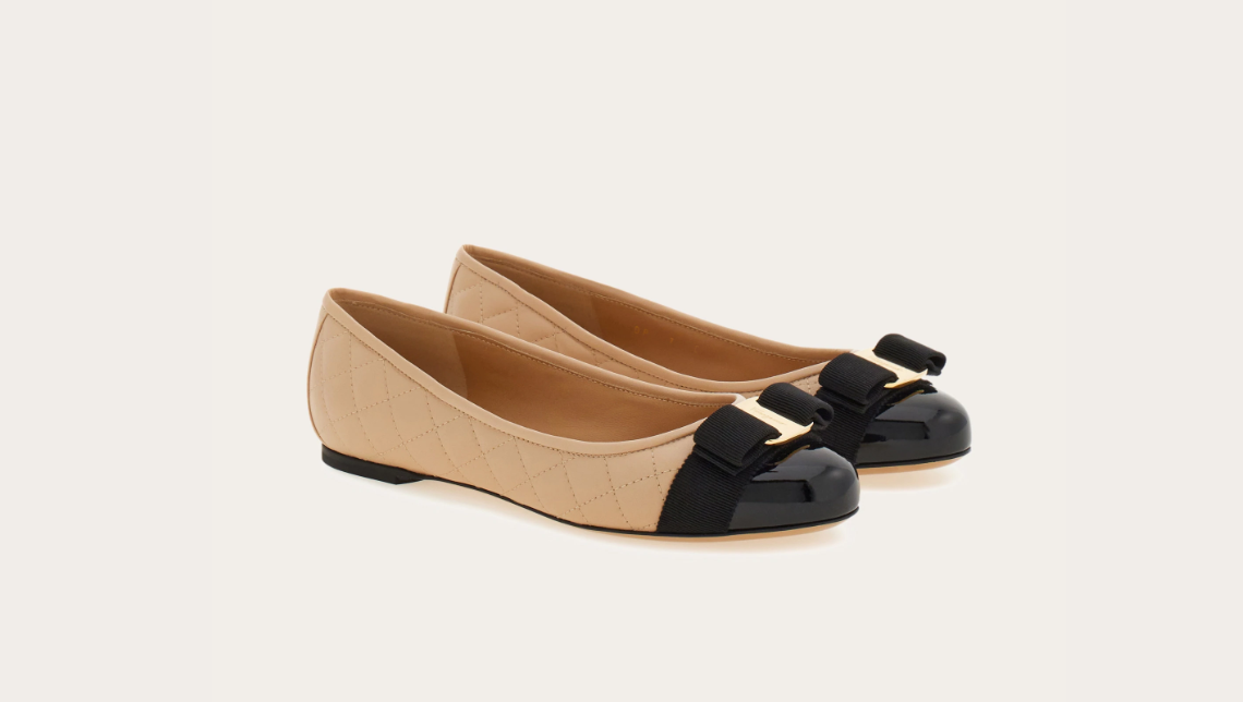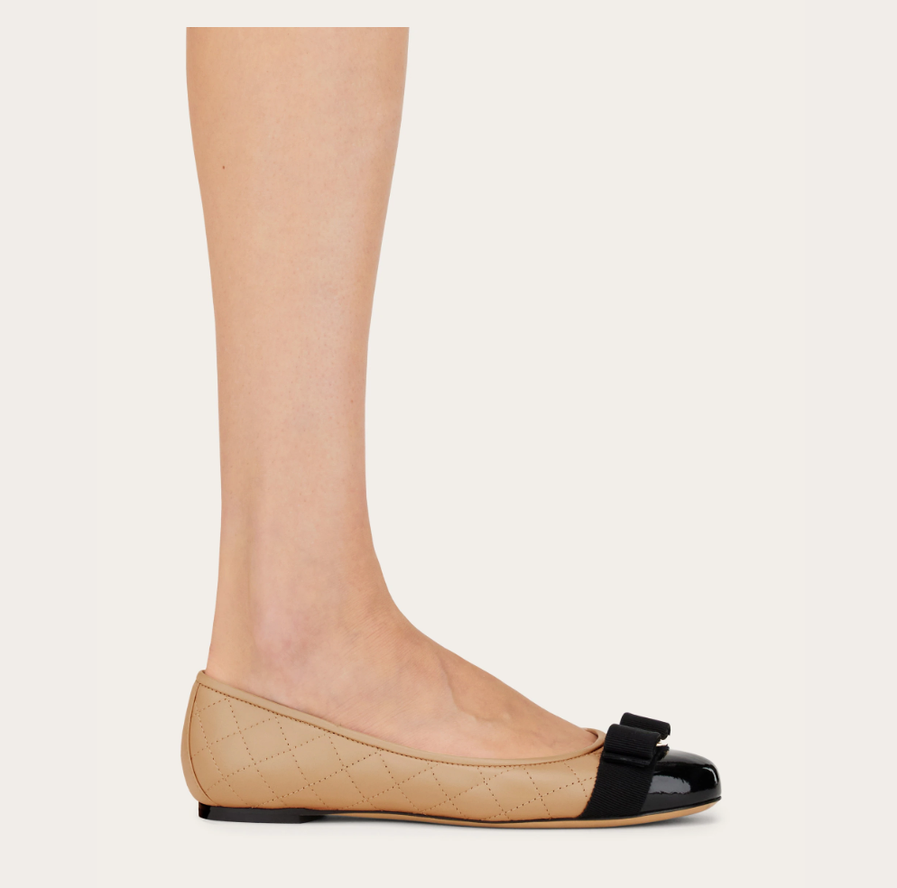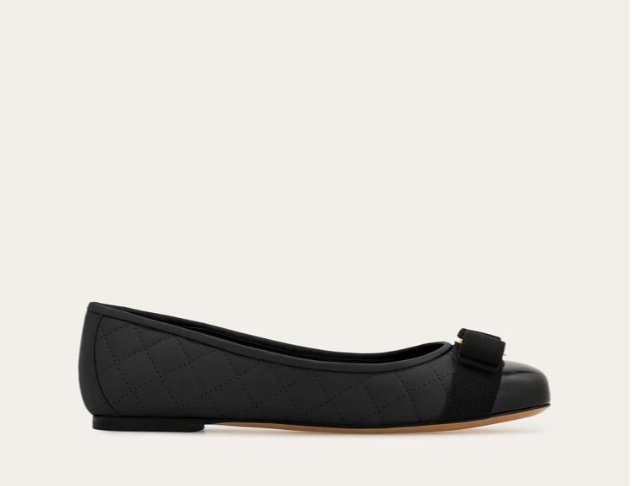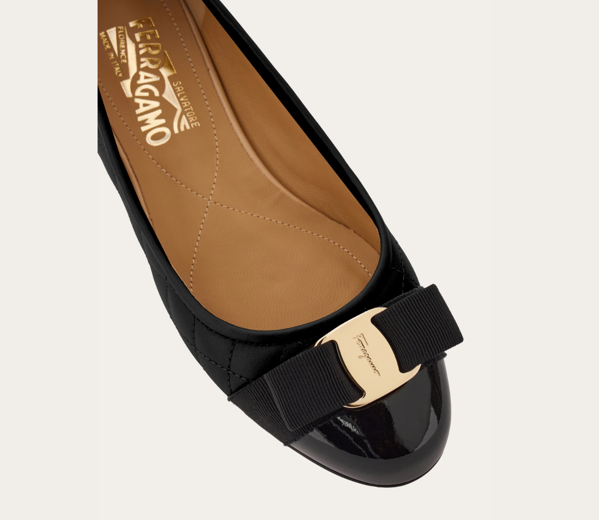 A classic never dies. These versatile flats are made of a sumptuous quilted nappa leather. The Varina is the perfect shoe to complement any look for their understated elegance. This model is decorated with an iconic Vara grosgrain bow and a contrasting patent insert on the toe.