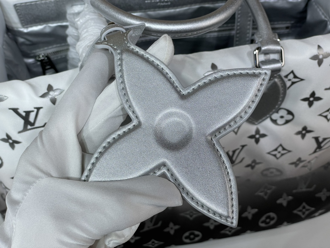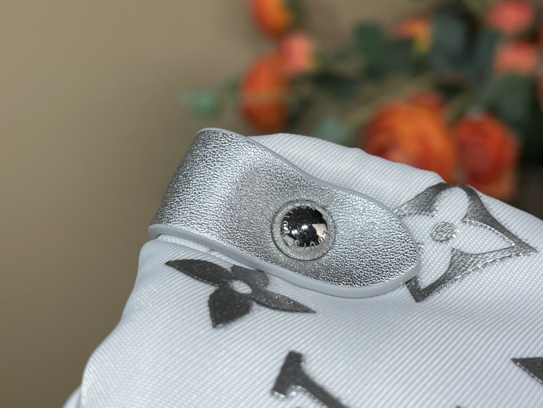Designed for both mountain and city wardrobes, the LV Snow collection introduces this statement edition of the OnTheGo MM, featuring the House’s all-new Monogram nylon. The iconic pattern is silkscreen printed in a gradient finish that is complemented with sleek silver-toned hardware. Elevated with a signature flower charm, the capacious design offers multiple carry and storage options and can fit inside a 13 inch laptop.