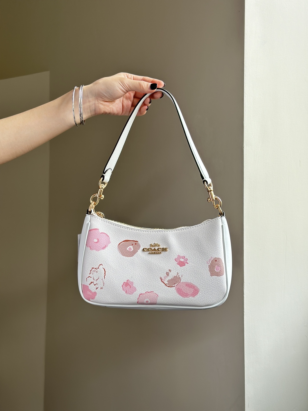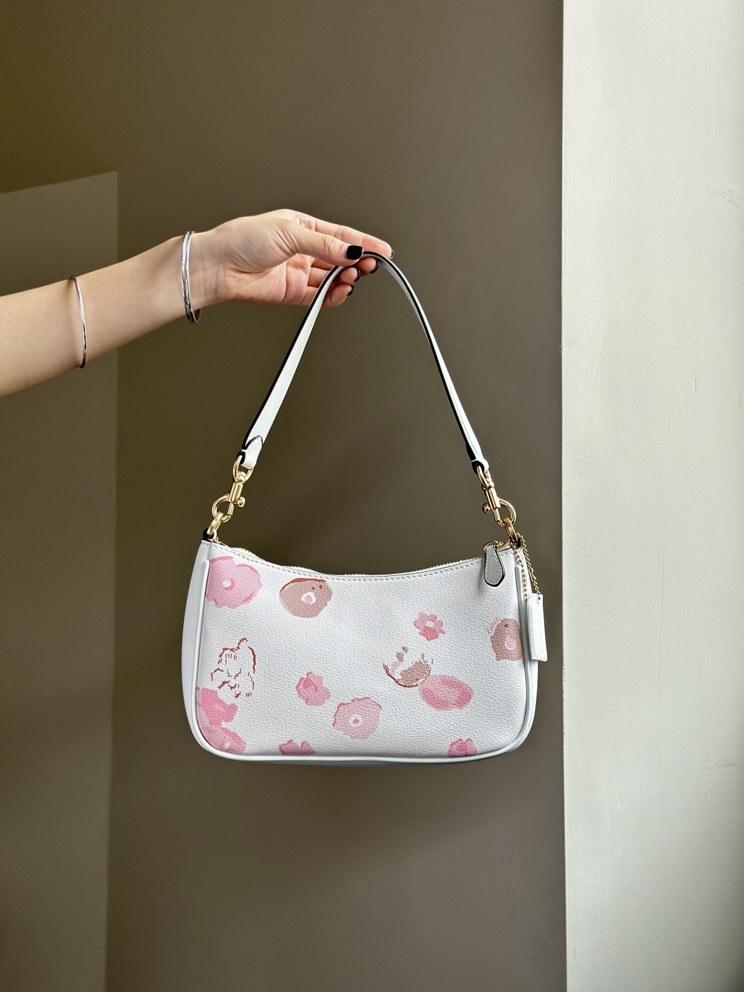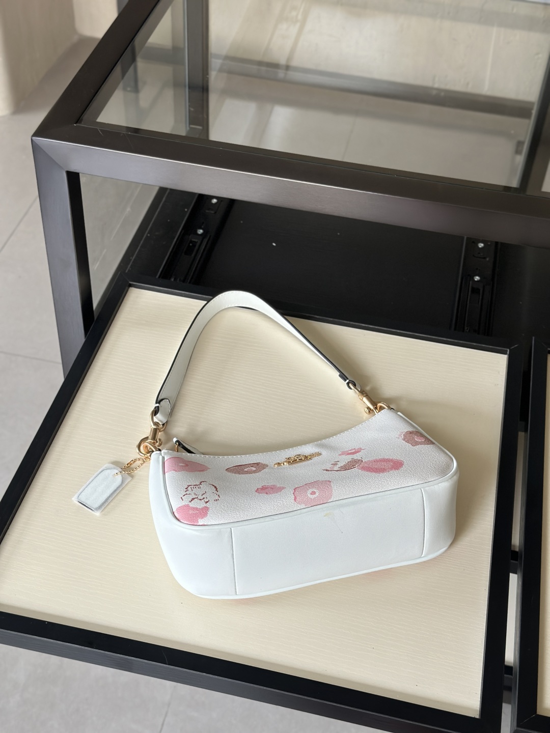 Make a bold statement with this Coach White Graffiti Shoulder Bag, a perfect fusion of urban edge and signature elegance. Crafted from durable coated canvas and smooth leather, the bag features a vibrant graffiti-inspired print in shades of black, red, and pastel tones, set against a clean white background for a modern street-style appeal.