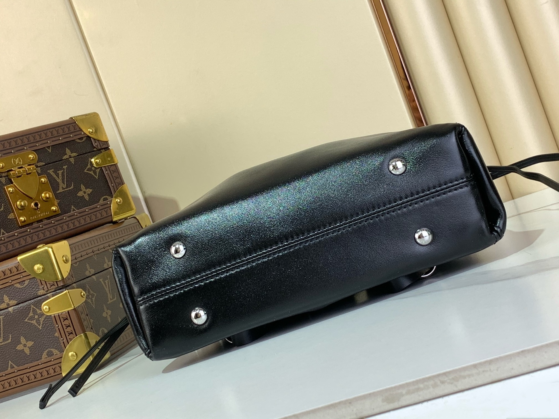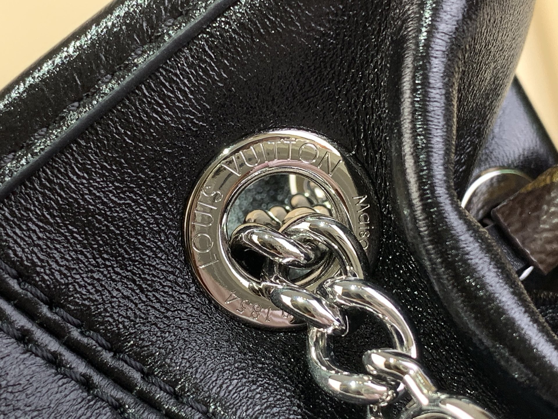 The LV Vibe collection introduces the Off Duty Backpack, a nonchalant hobo style that is perfect for everyday wear. Crafted from lamb leather, it is elevated with a jewel-inspired silver-toned chain that is adorned with a signature LV Circle. The functional design can be worn multiple ways, with options to transform it into a backpack or into a chain hobo.