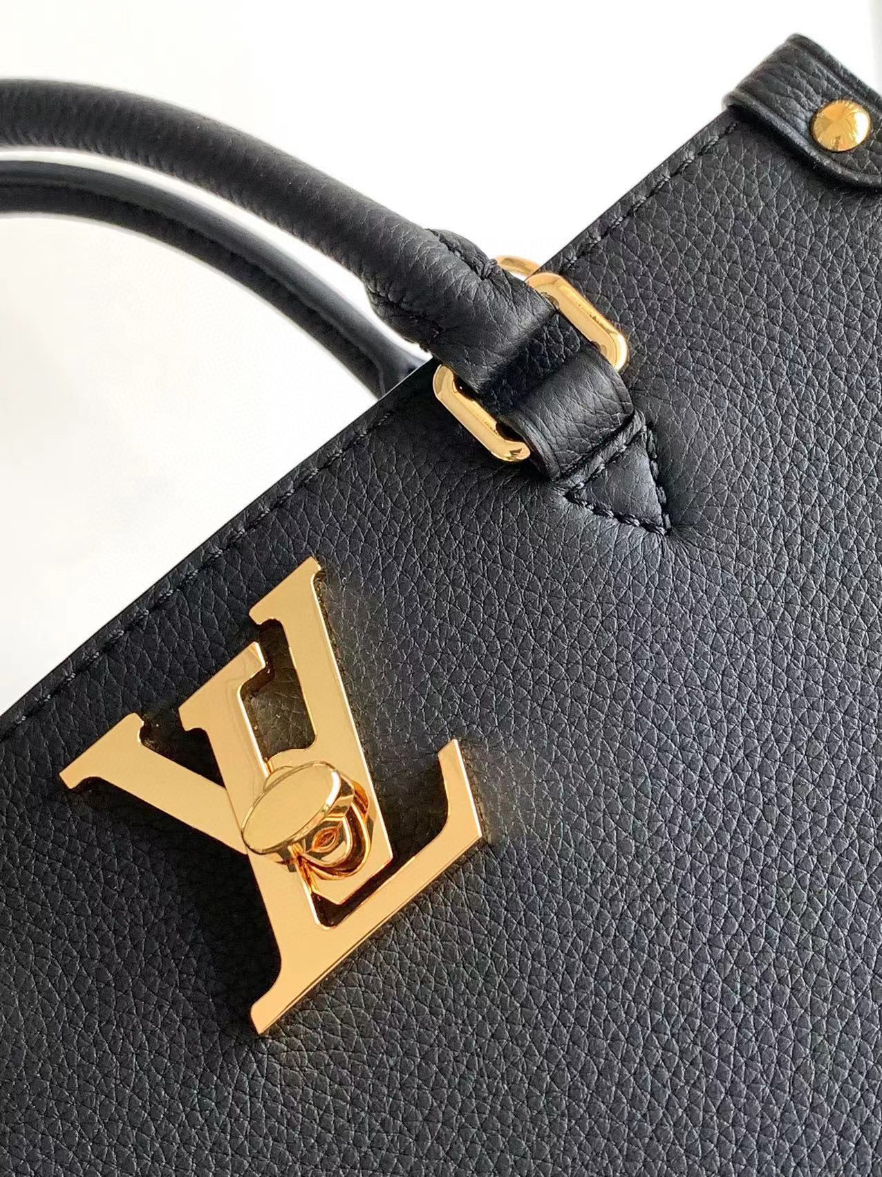 The Lock & Go Bag redefines everyday elegance with its sleek, boxy silhouette and thoughtful details. Crafted from smooth-grained cowhide leather, this structured handbag features signature accents like the LV turn-lock closure, engraved studs, and a Louis Vuitton heat-stamped logo, highlighting the House’s heritage craftsmanship.